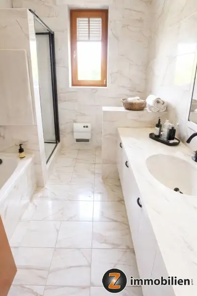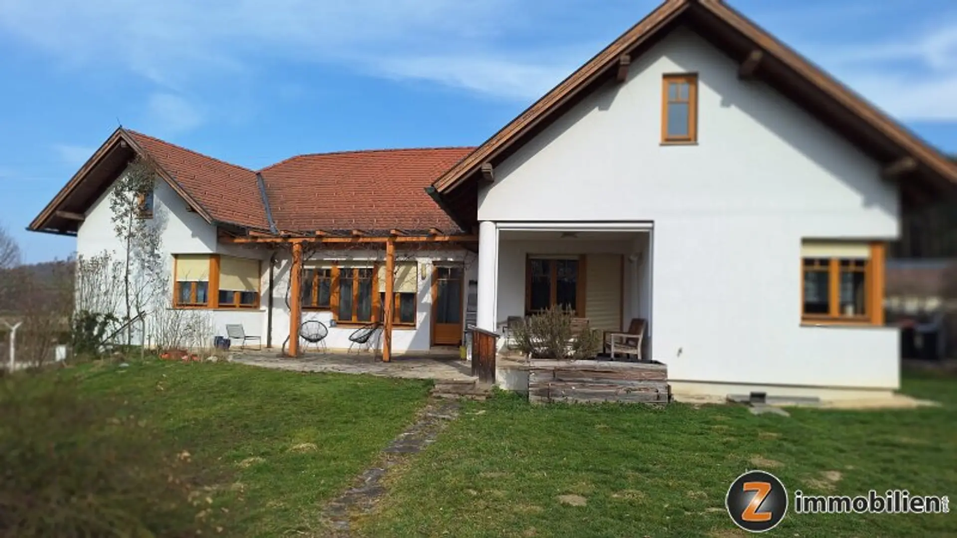 Das Haus wird voll möbliert übergeben und ist komplett unterkellert. Besonders praktisch ist der ca. 40 m² große Kfz-Abstellplatz im Untergeschoss.