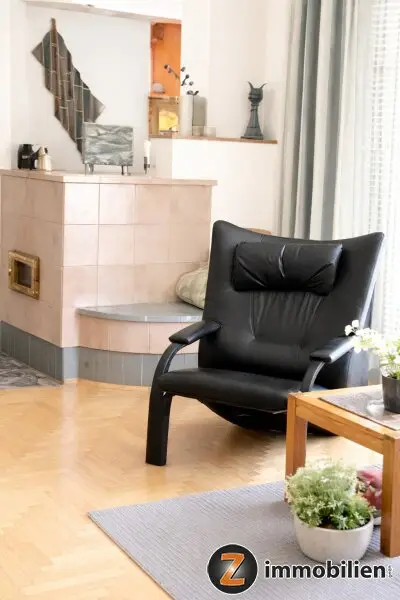 Die stilvolle Kombination aus edlen Holzböden und langlebigem Granit verleiht den Räumen eine hochwertige und zugleich warme Atmosphäre. Fußbodenheizung in den Steinbereichen sorgt zusätzlich für ein angenehmes Wohnklima. An kühlen Tagen spendet der traditionelle Kachelofen wohlige Wärme, ergänzt durch eine Stromheizung.
