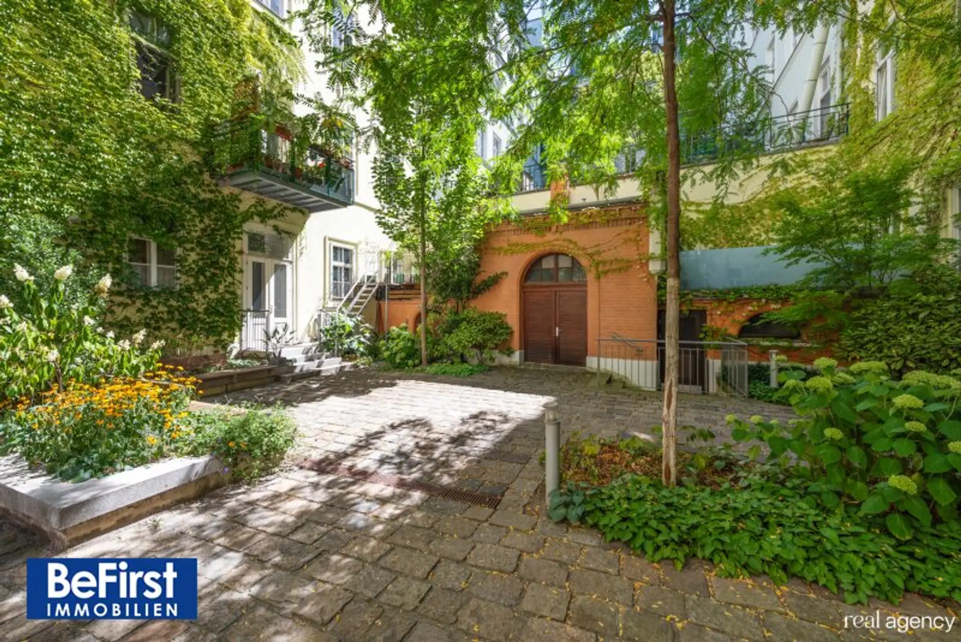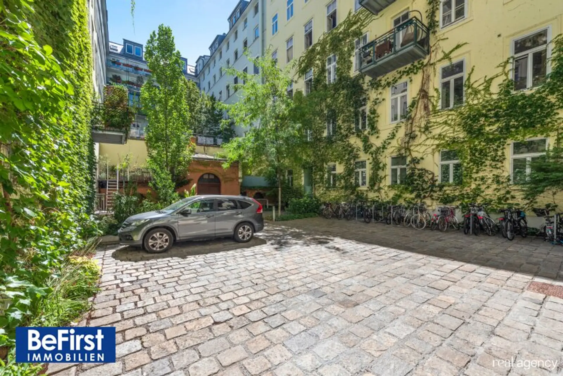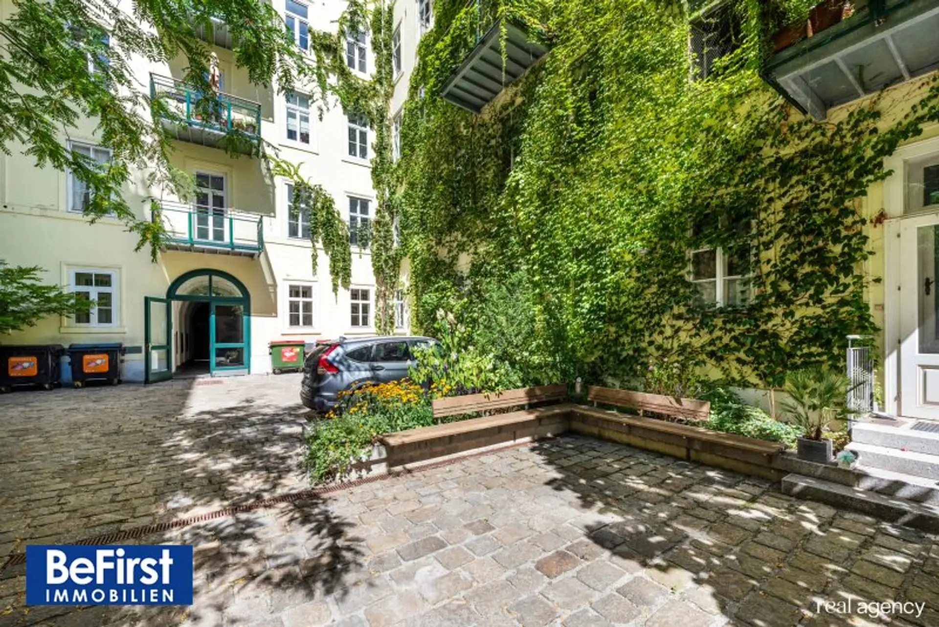 Ebenso steht ein KfZ Abstellplatz im Eigentum in diesem wunderschönen Innenhof zur Verfügung.