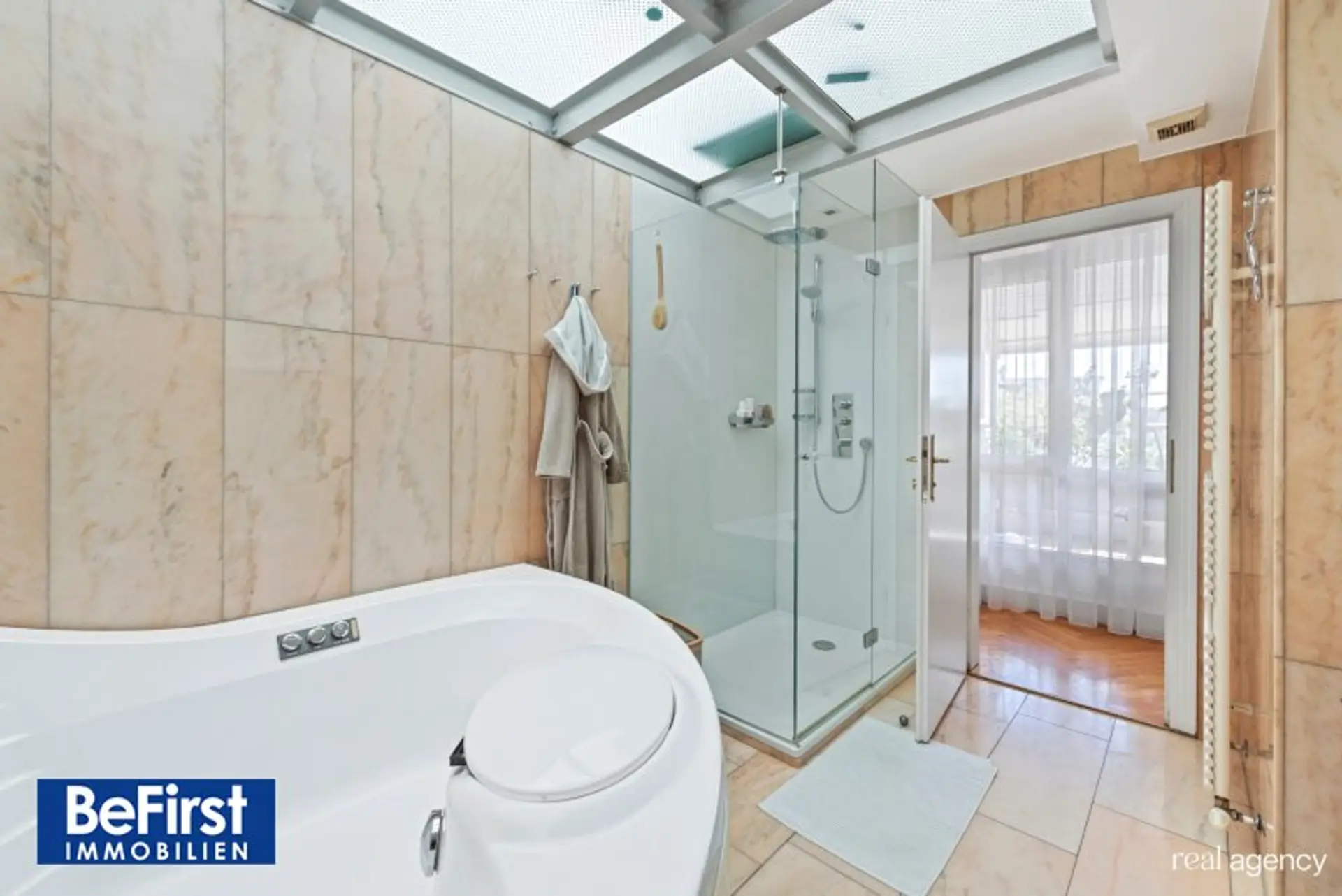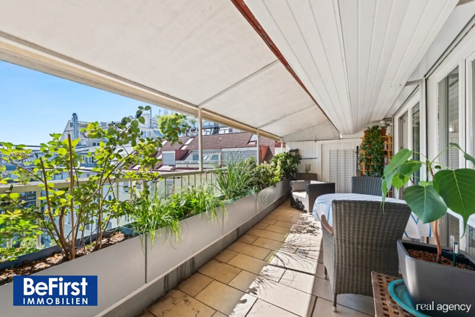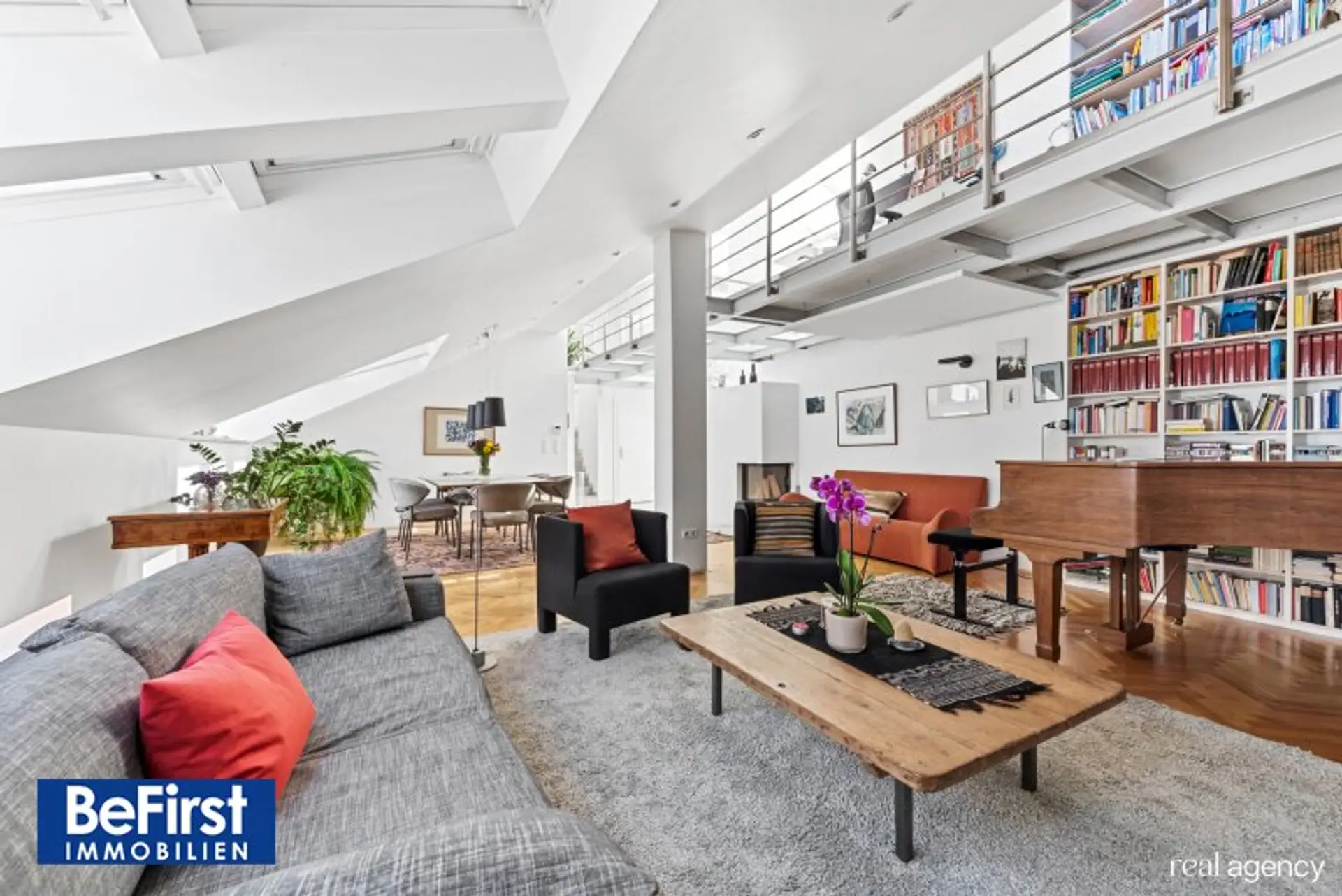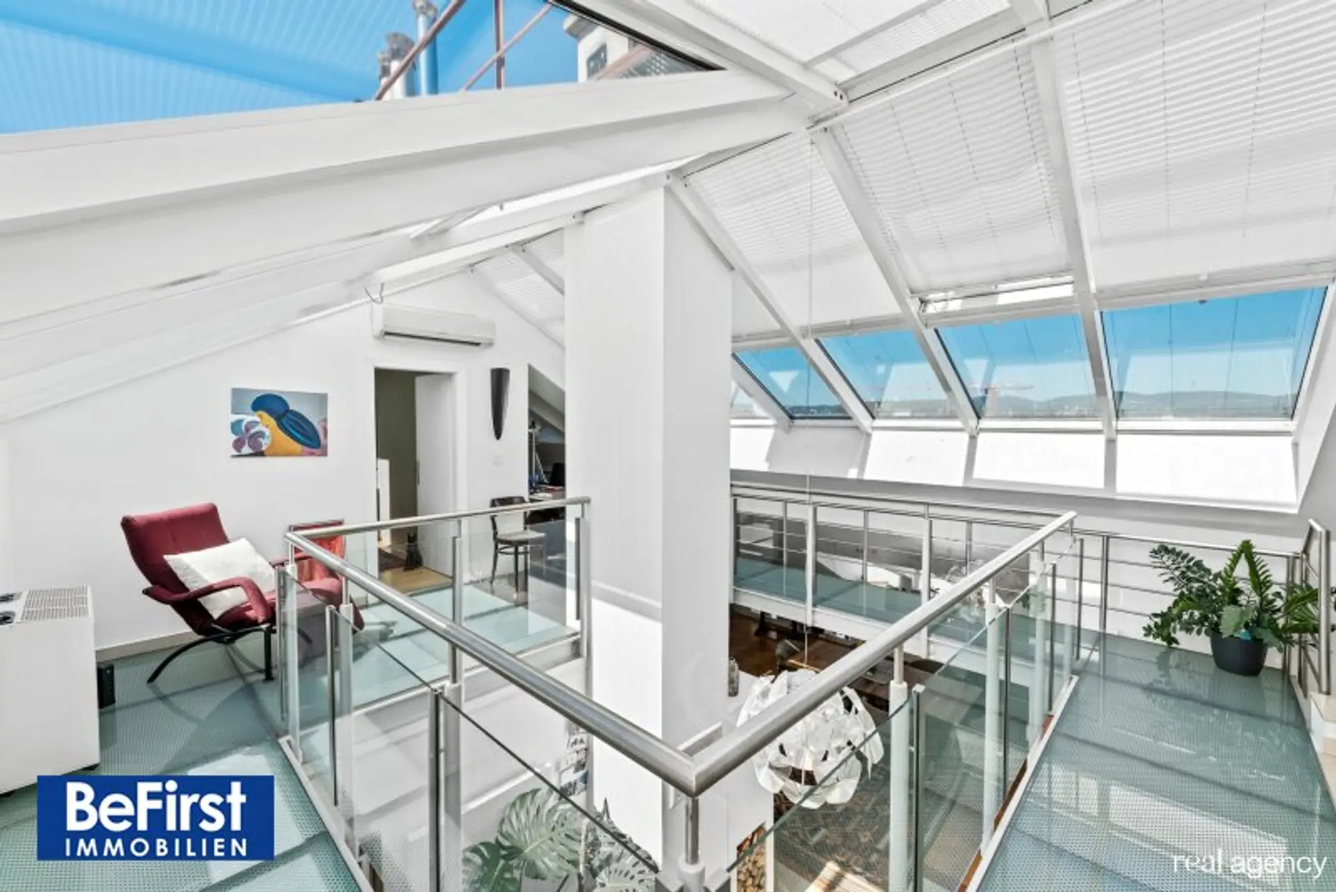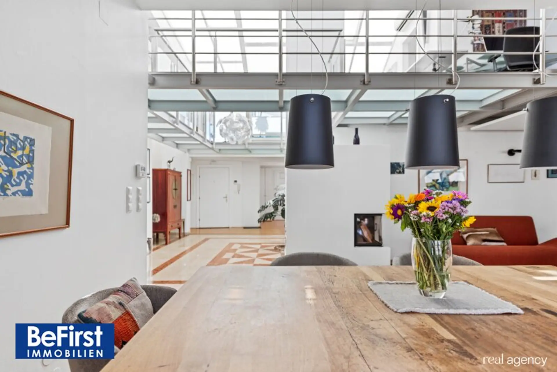 Diese sehr schicke und architektonisch toll gestaltete Dachterrassenwohnung in phantastischer Lage zwischen der Votivkirche und dem Servitenviertel gelegen, besticht neben der modernen und offenen Raumaufteilung allen voran durch zwei ruhig gelegene, herrliche Terrassen. Die Immobilie mit rd. 181m2 Wohnnutzfläche wurde hochwertigst in einem der zauberhaften Gründerzeithäuser am Beginn der Berggasse errichtet. Die Wohnfläche teilt sich in eine erste Ebene mit großzügigem Entree, dem wunderschönen Wohnbereich, einer separaten, lichtdurchfluteten Küche und dem Schlafzimmer mit einem angeschlossenen Badezimmer sowie der in einen hübschen, sonnendurchfluteten Innenhof ausgerichteten rd.16m2 großen Terrasse. Eine Garderobe, ein weitere Abstell- und Wirtschaftsraum etc. zählen zudem zu der perfekt gestalteten Immobilie und geben ausreichend Stauraum. Die Decke im Eingangsbereich reicht durchgehend bis ins Obergeschoss und bietet damit in beiden Ebenen viel Licht und Helligkeit. Auch im OG zeigt sich die harmonische Planung. Eine nach beiden Seiten offene, verglaste Galerie dient als verbindendes Element zu einem Kinder-/Gästezimmer, einem Arbeitsbereich und einem weiteren Bad mit Dusche/WC sowie der herrlichen 20m2 großen zweiten Terrasse, die ebenfalls in den Innenhof ausgerichtet ist. Beheizt wird über Fußbodenheizung und Radiatoren mit Gas oder über den wunderschönen, offenen Kamin im Wohnbereich. Alle Veluxfenster verfügen über Innen- und Außenbeschattung. Die Kühlung erfolgt über Klimageräte.
