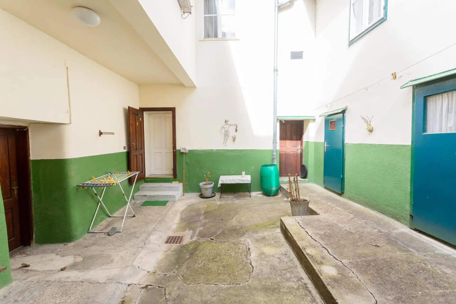 Über den charmanten Innenhof, der maximale Privatsphäre bietet, können zentral alle Räumlichkeiten des Wohnhauses sowie Nebengebäudes betreten werden.