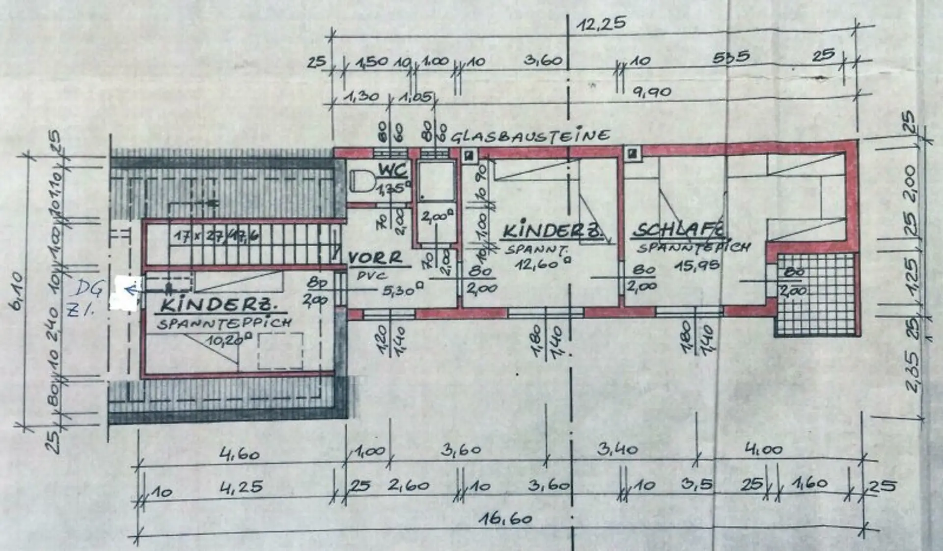 Insgesamt gibt es eine Wohnfläche von ca. 157 m² und einen bereits als Wohnraum ausgebauten Dachboden: