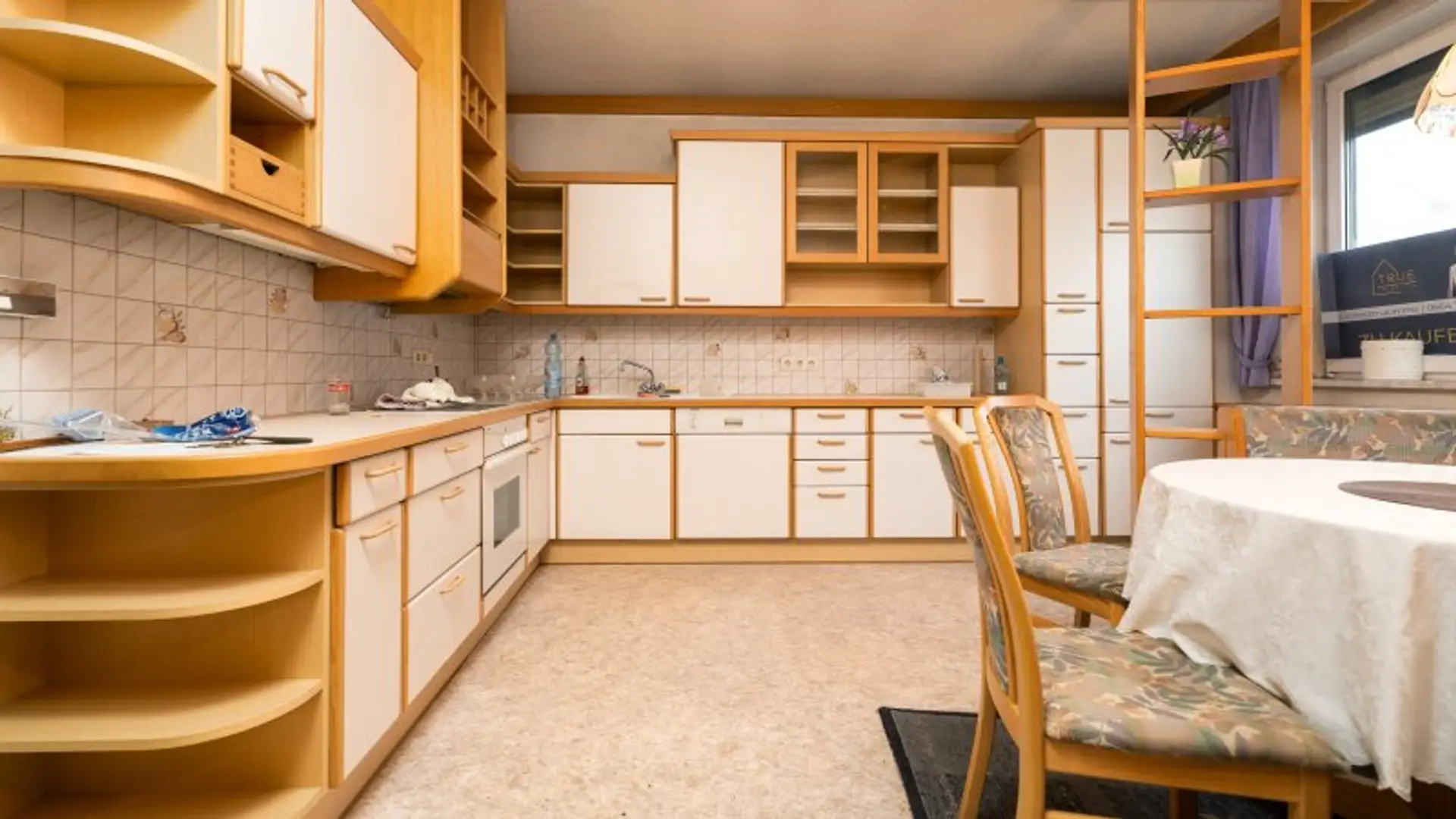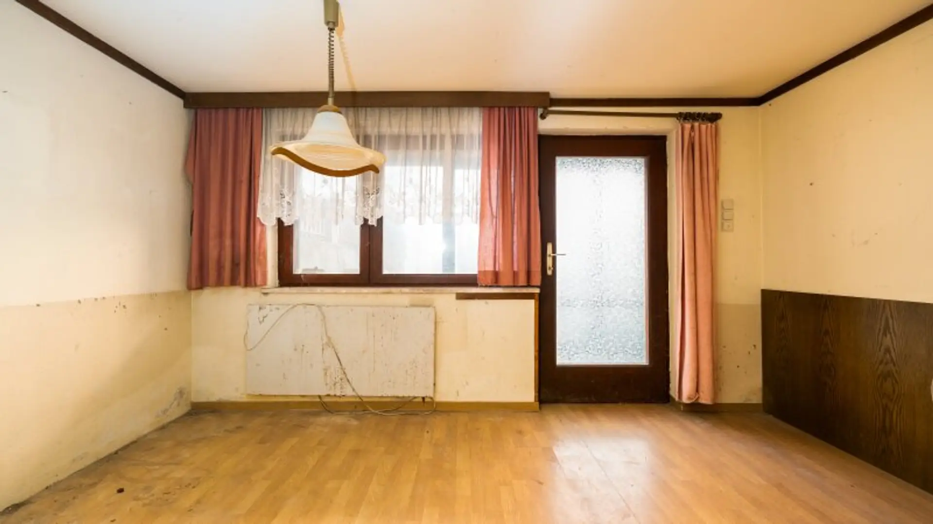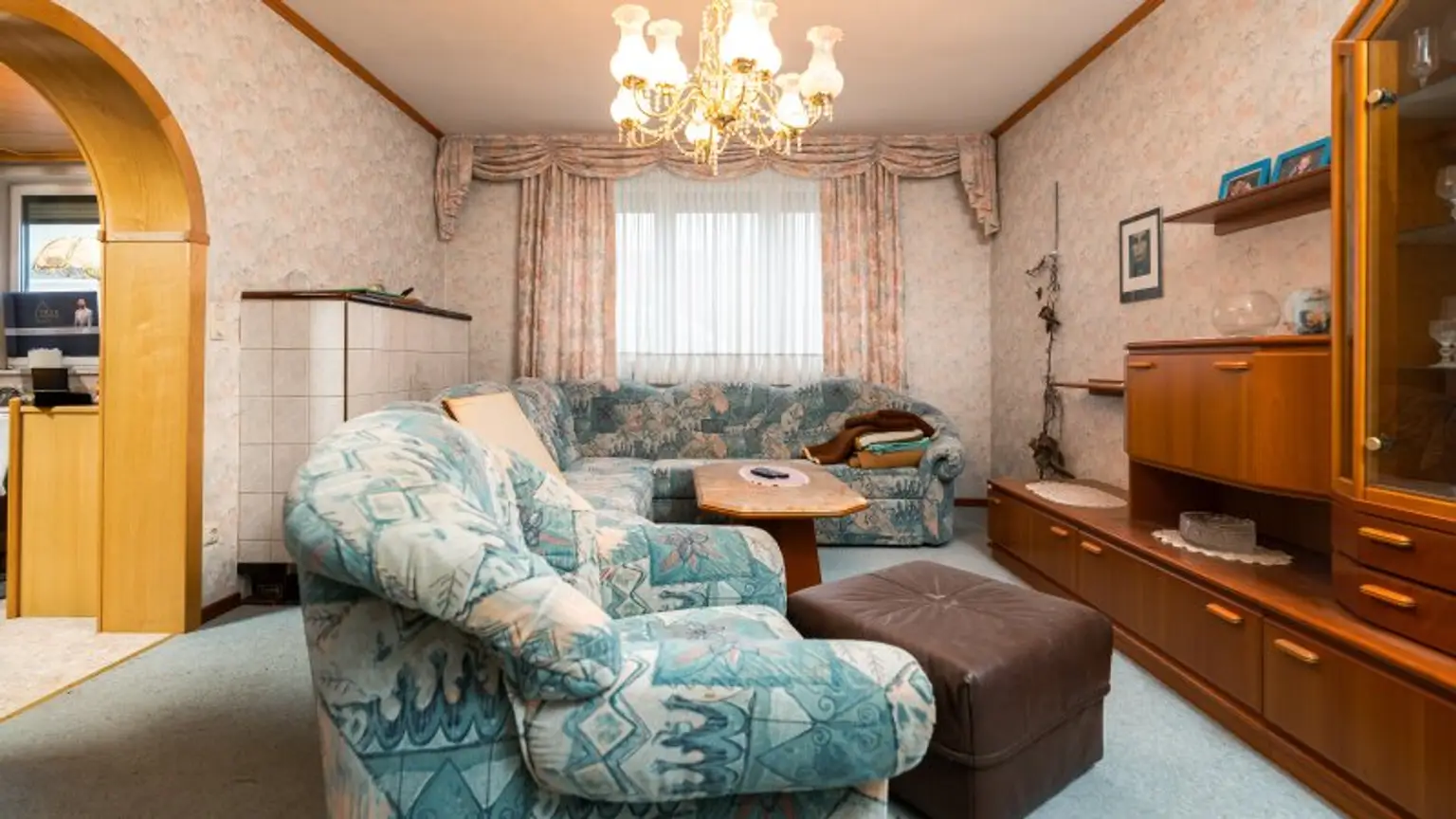 Die Fenster straßenseitig wurden bereits durch 3-fach Verglasung erneuert, auch diese sind schon in die Jahre gekommen, während im restlichen Haus noch 2-fach verglaste Holzfenster (Baujahr entsprechend) verbaut sind. Das Dach besteht aus Eternit.