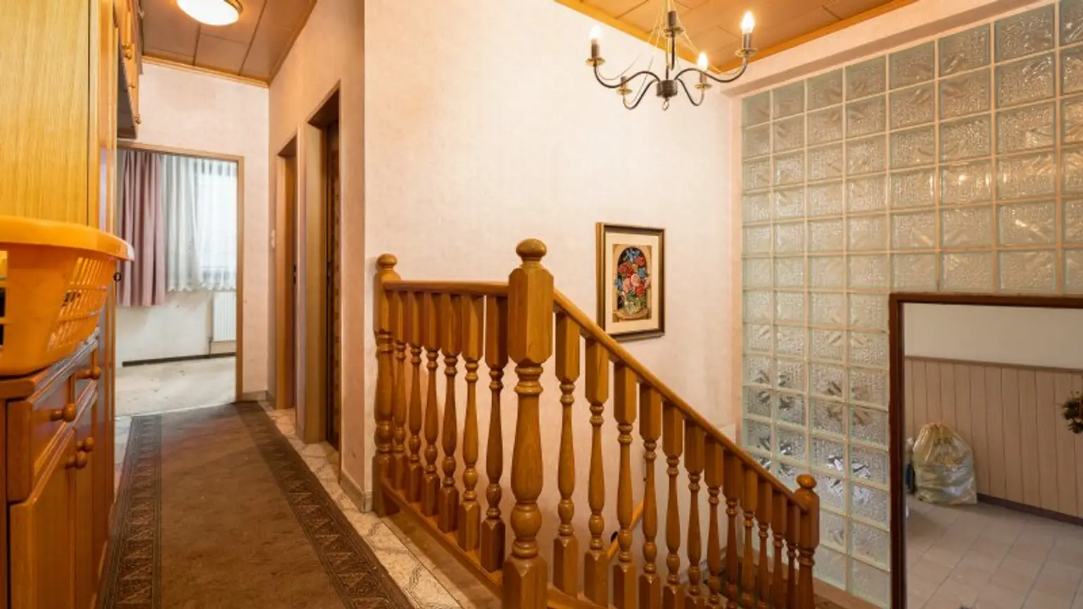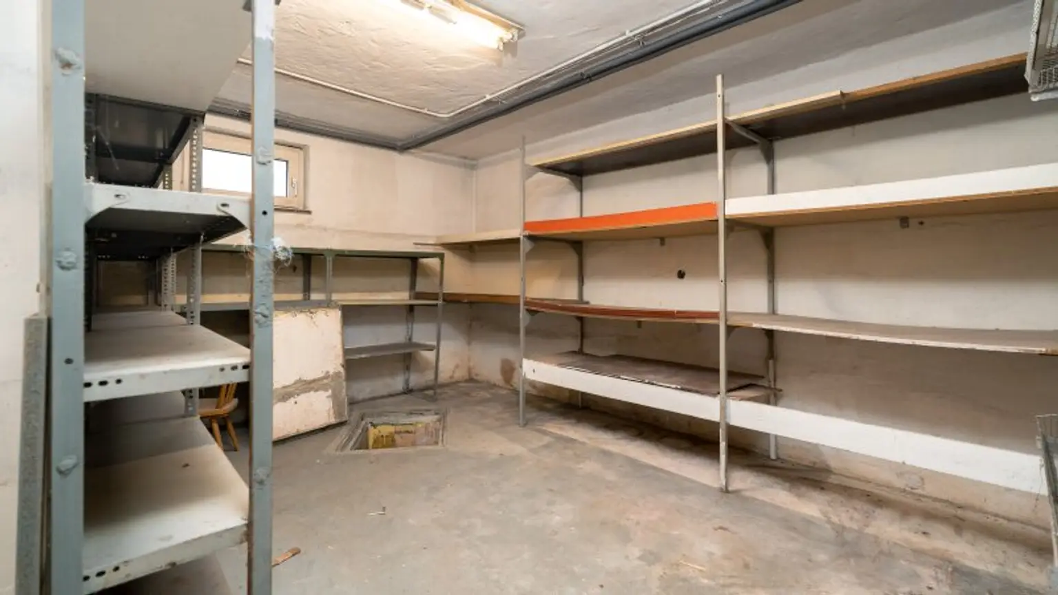 Über den Eingangsbereich gelangt man nicht nur in die Wohnräume, sondern auch direkt in den Keller, der mit insgesamt vier Räumen plus einem Heizraum überraschend viel Platz bietet. Dort befindet sich die Öl-Zentralheizung samt 1000-Liter-Tank – solide Technik, gut erreichbar und praktisch angeordnet.