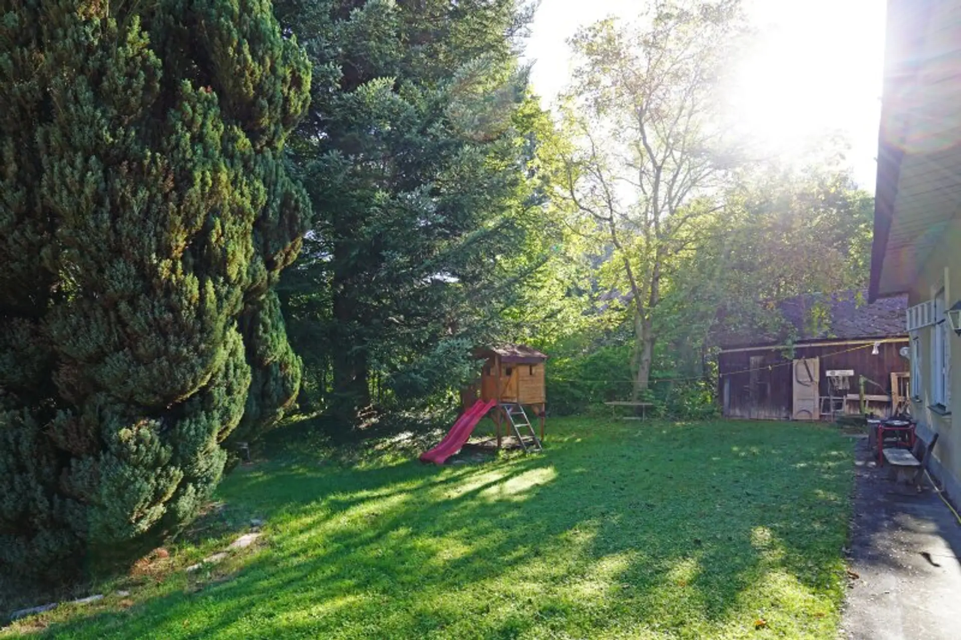 Bestehendes Wohnhaus (Baujahr 1912 / Umbau 1925–32) mit Veranda, teilausgebautem Dachgeschoss (5 Gaupen)