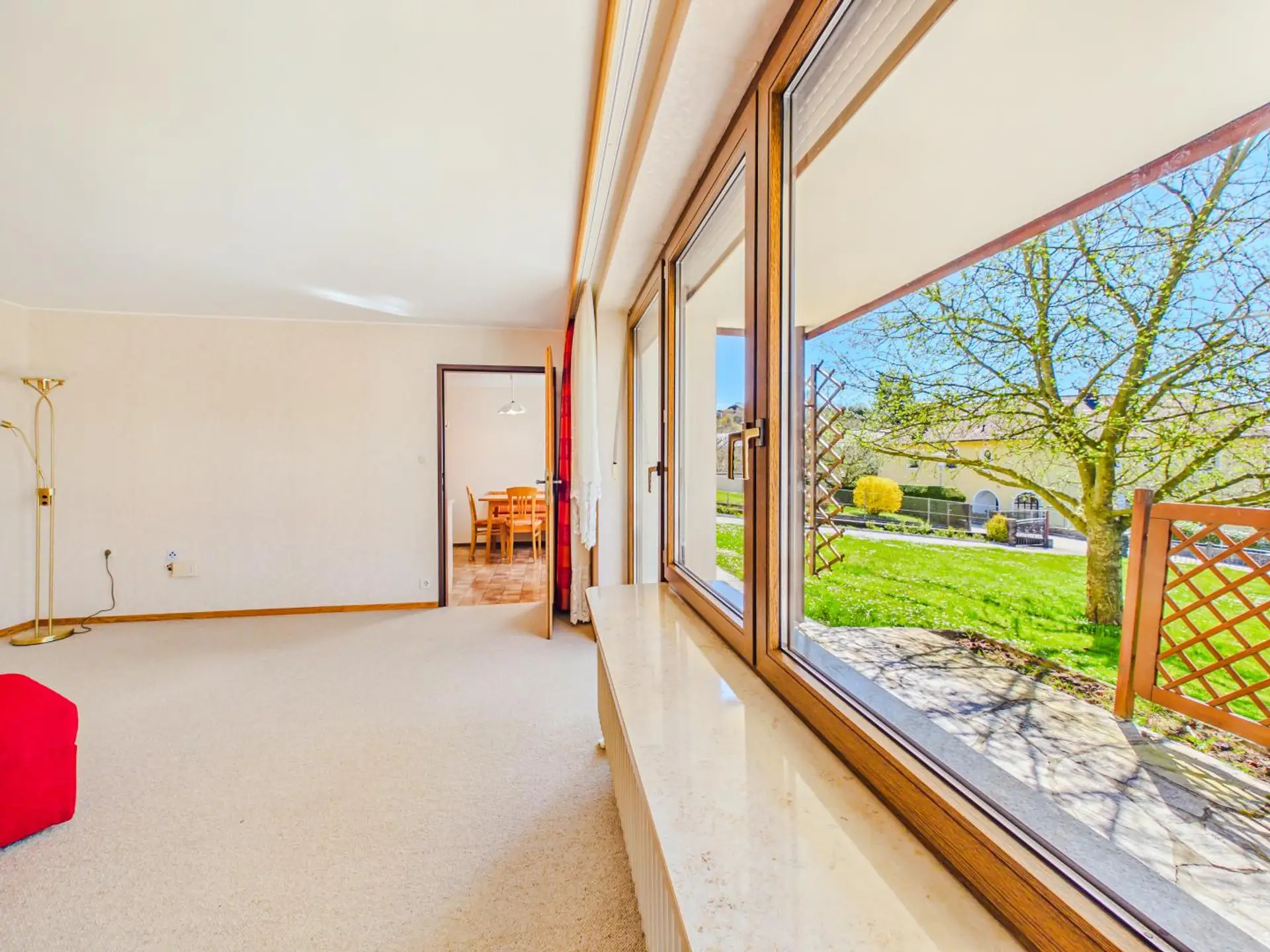 Hier erwartet Sie ein großzügiger Wohnbereich mit direktem Zugang zur Terrasse und in den Garten – der perfekte Ort für entspannte Stunden im Grünen.