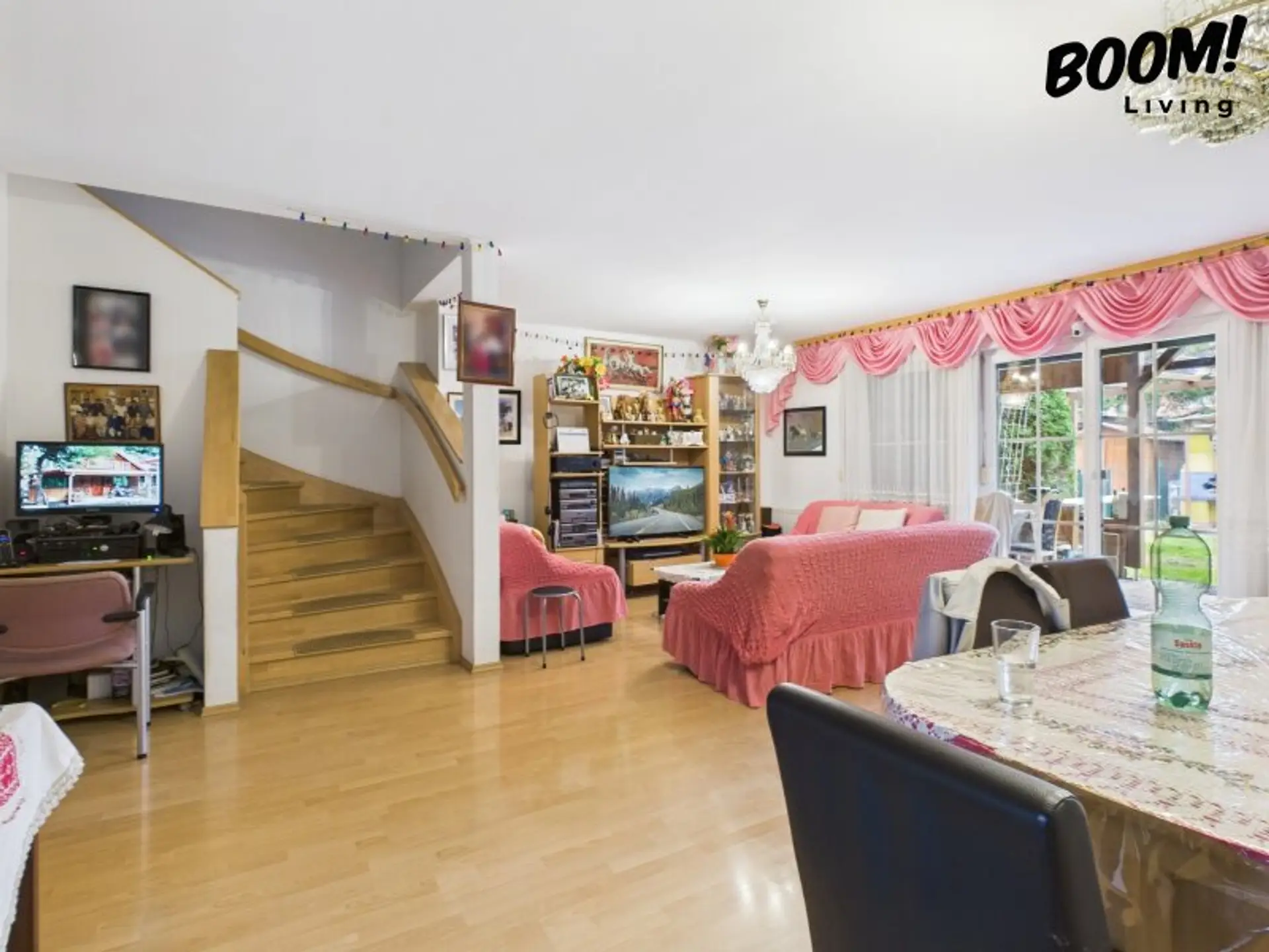 Im Erdgeschoss erwartet Sie ein helles Wohnzimmer mit direktem Zugang in den gepflegten Garten (ca. 80 m²) und Terasse (ca. 20 m²) – ideal für entspannte Stunden im Freien.