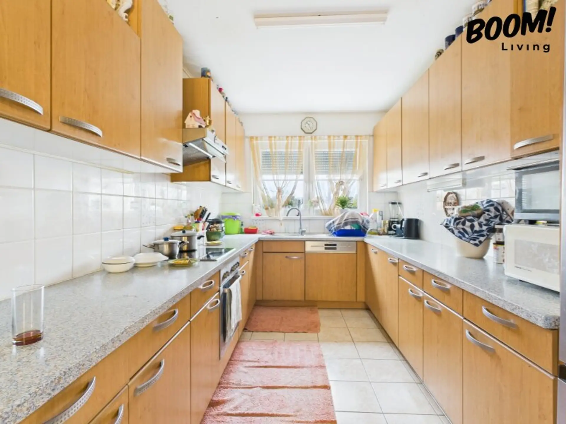 Die Küche ist vollständig ausgestattet und grenzt direkt an den Wohnbereich an.