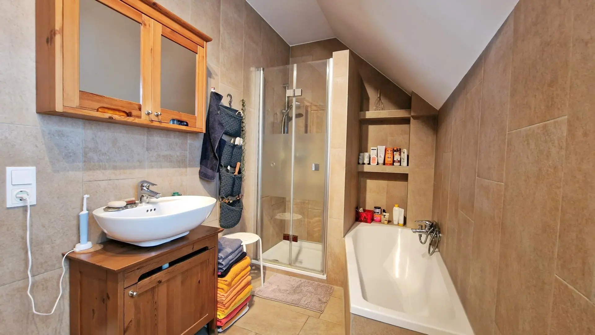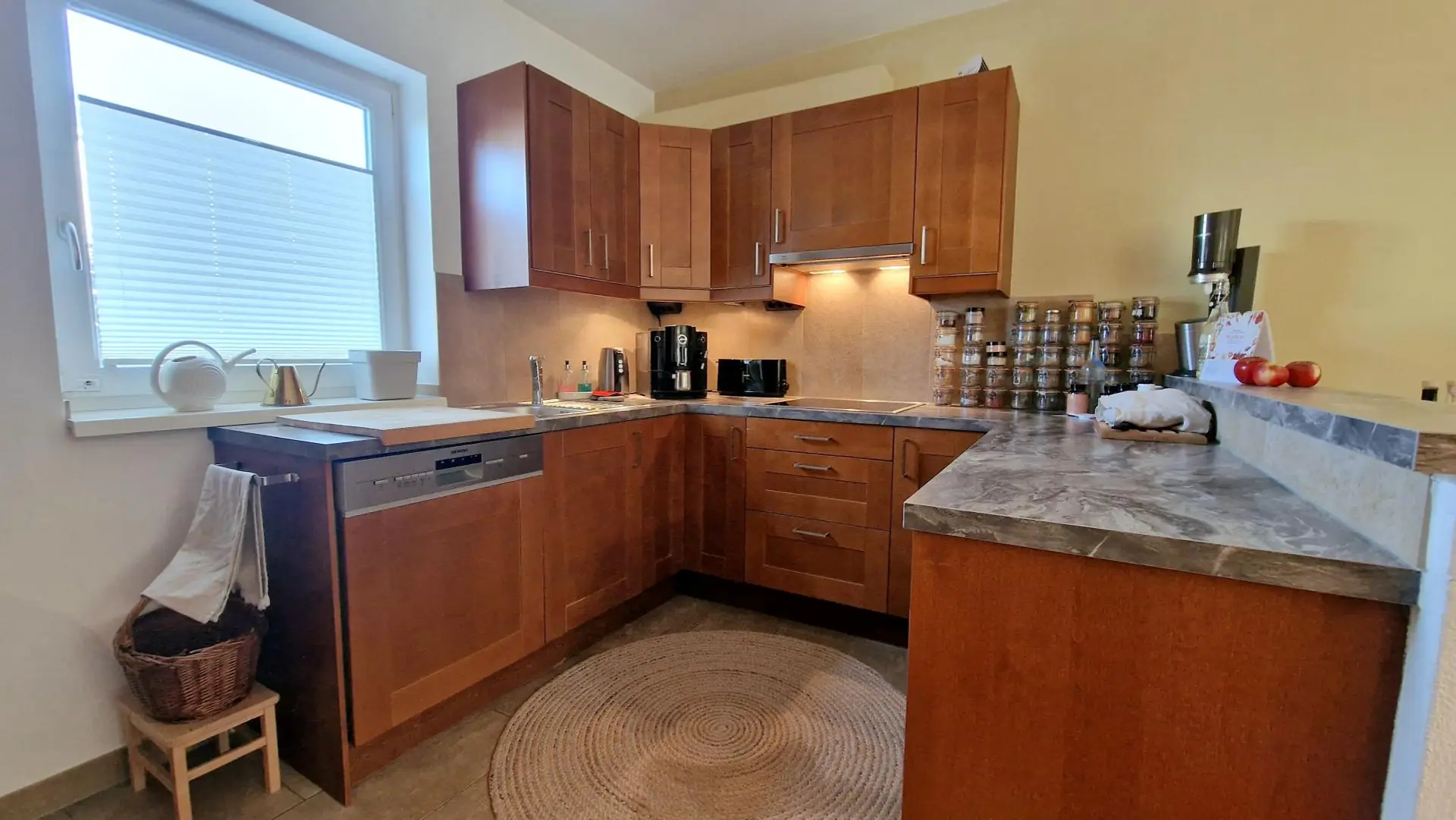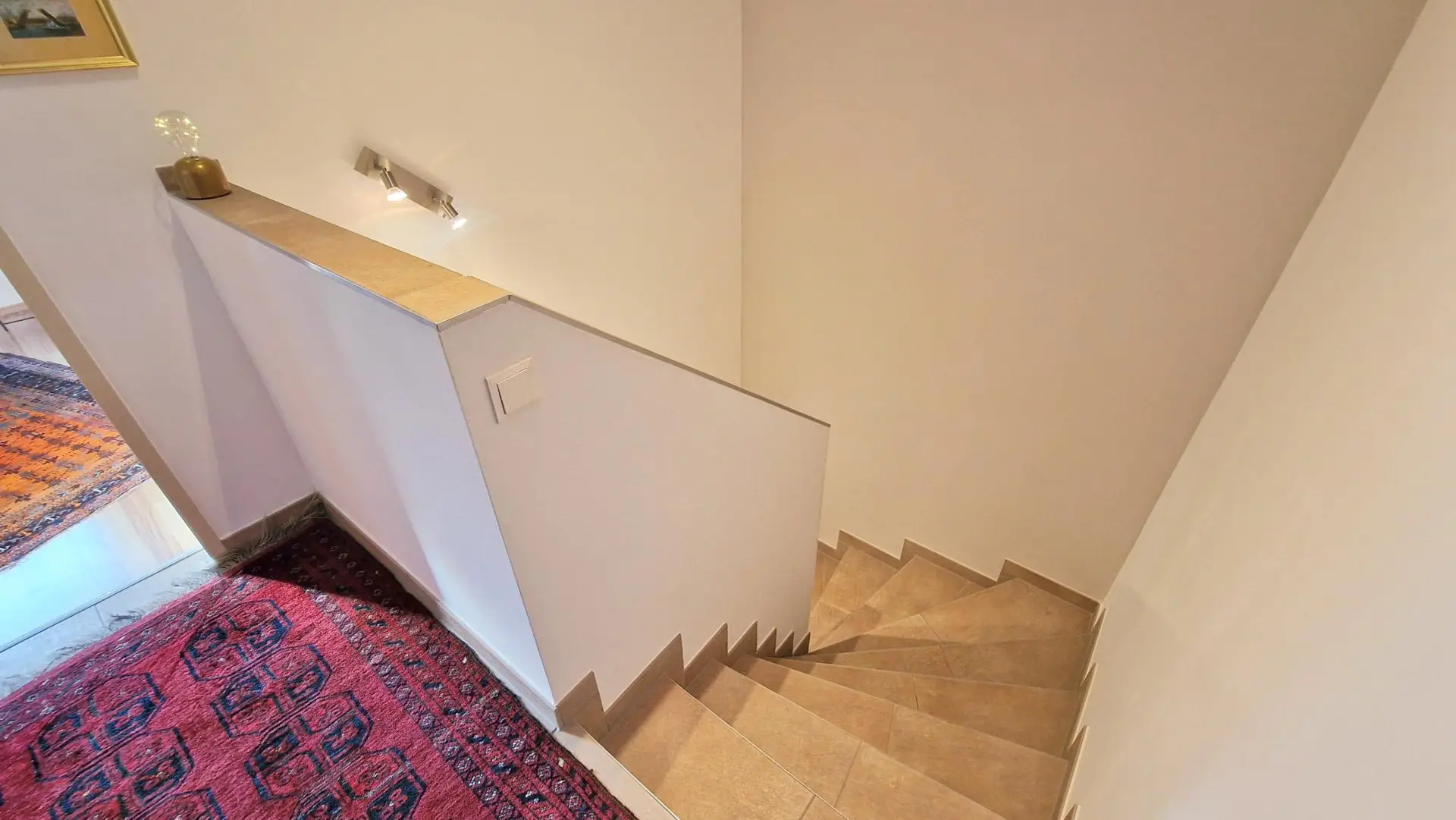 - Holzparkettböden in allen Wohn- und Schlafräumen, Küche und Nassräume gefliest