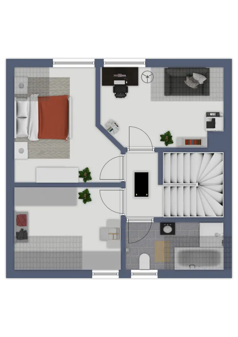 - EG: Vorraum, Gäste-WC, offene Küche und Wohn-Ess-Zimmer, Abstellraum