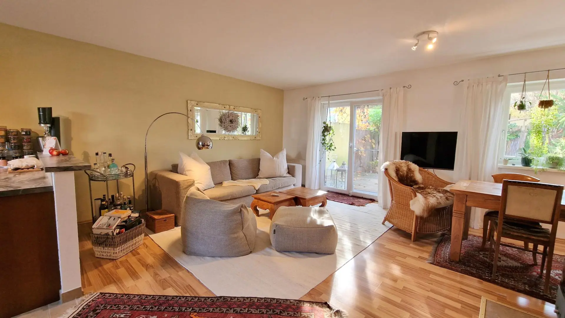 Besonders attraktiv sind der eigene kleine Garten mit Pool und die sonnige Süd-Westterrasse, die zum Entspannen und Genießen einladen. Ein voll unterkellerter Bereich bietet zusätzlichen Stauraum oder Platz für Hobby und Technik. Der eigene Parkplatz rundet das Angebot ab.