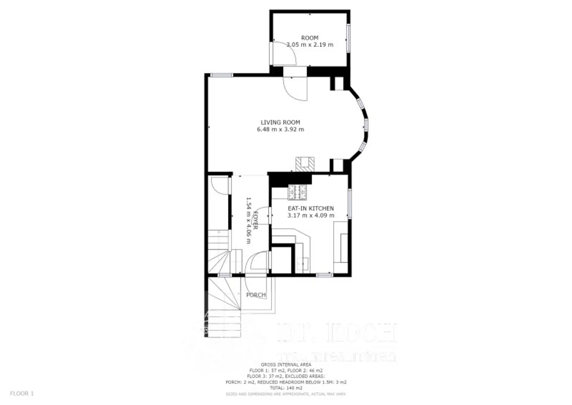 Das Hochparterre bietet ein Vorzimmer, ein wunderschönes Wohnzimmer mit Erker und Ofen, ein Zimmer mit direktem Ausgang zum Garten, eine separate Küche und ein WC.