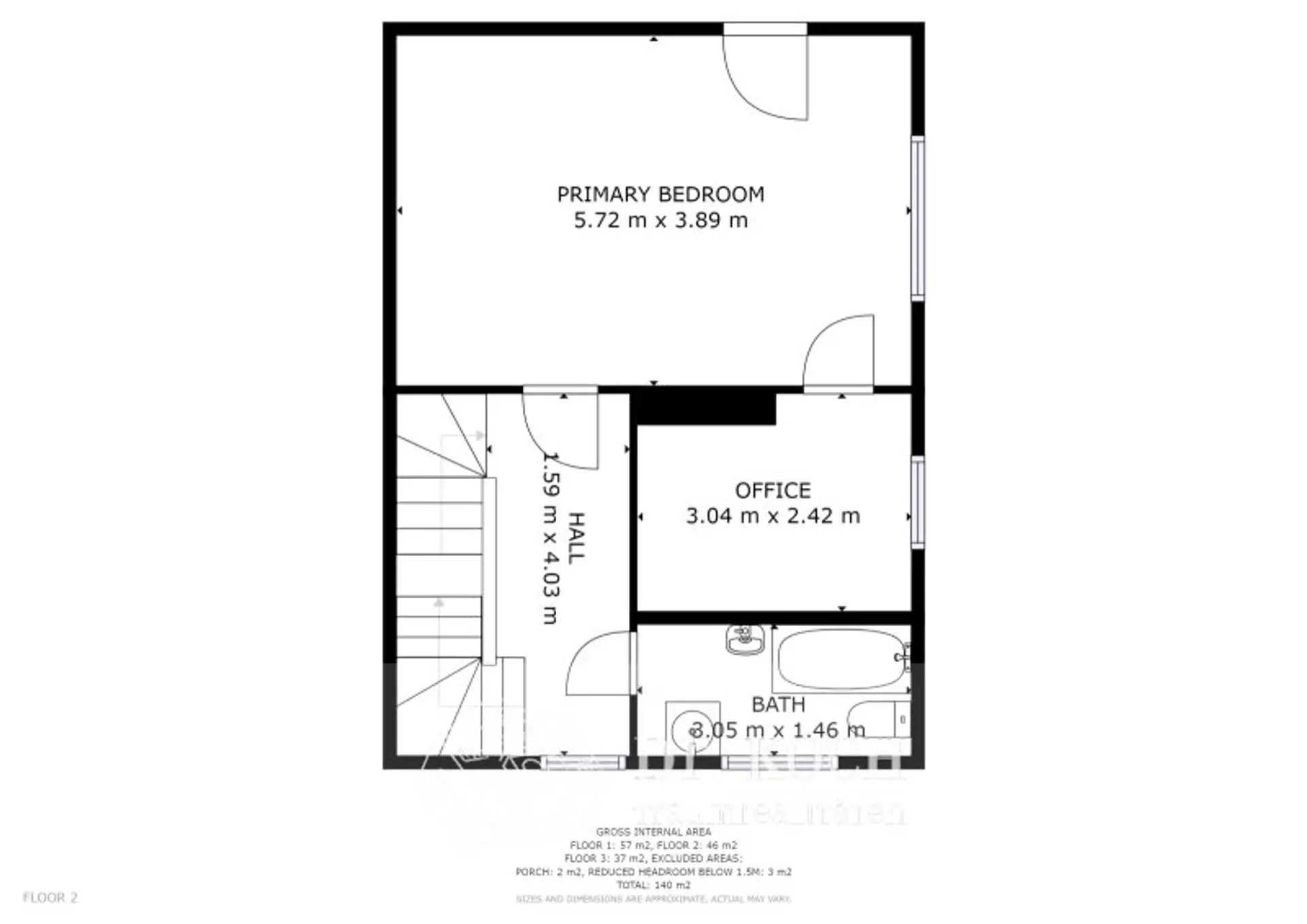 Im 1. Obergeschoß befinden sich ein Schlafzimmer mit anschließendem Zimmer (Büro oder Garderobe) und ein Bad.
