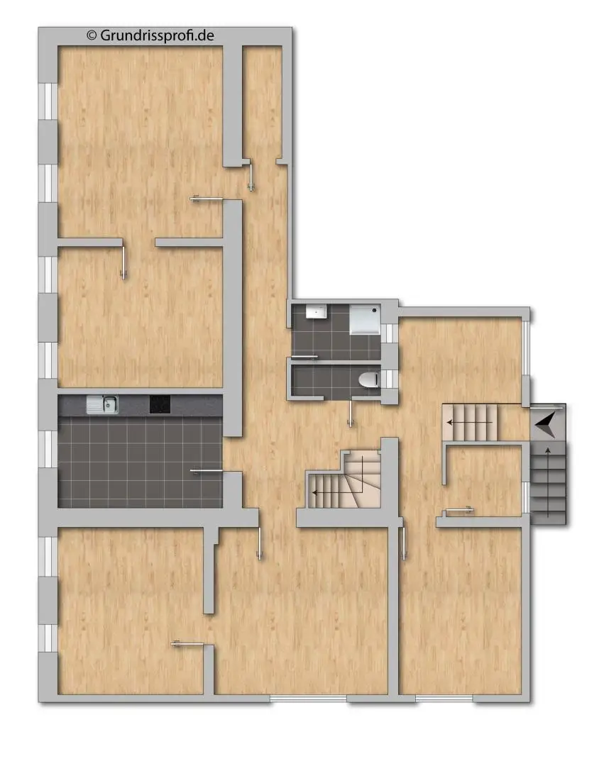 Wohneinheit 2 – ca. 130 m² (Erdgeschoss und Dachgeschoss) + ca. 61 m² Rohdachboden
