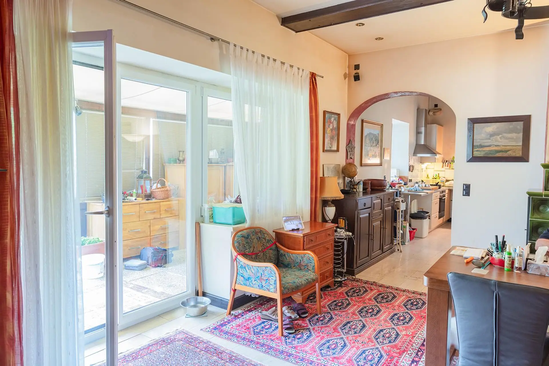 • Wohnraum mit Ausgang auf die westseitig ausgerichtete Terrasse und in den Garten