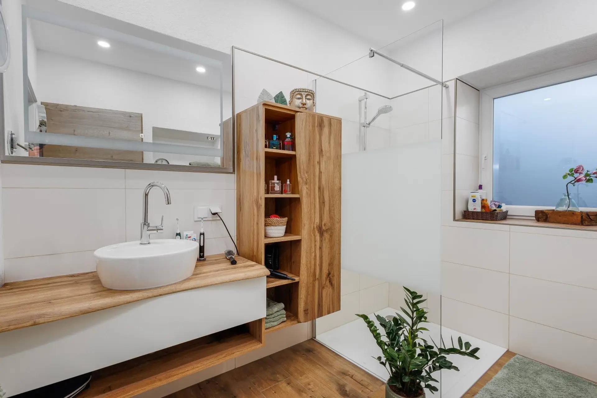 • Badezimmer mit Dusche mit Fußbodenheizung