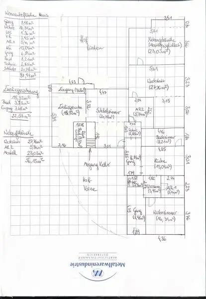 Nebengebäude: Abstellraum, große Werkstatt, „Garage“ & 2 Schuppen