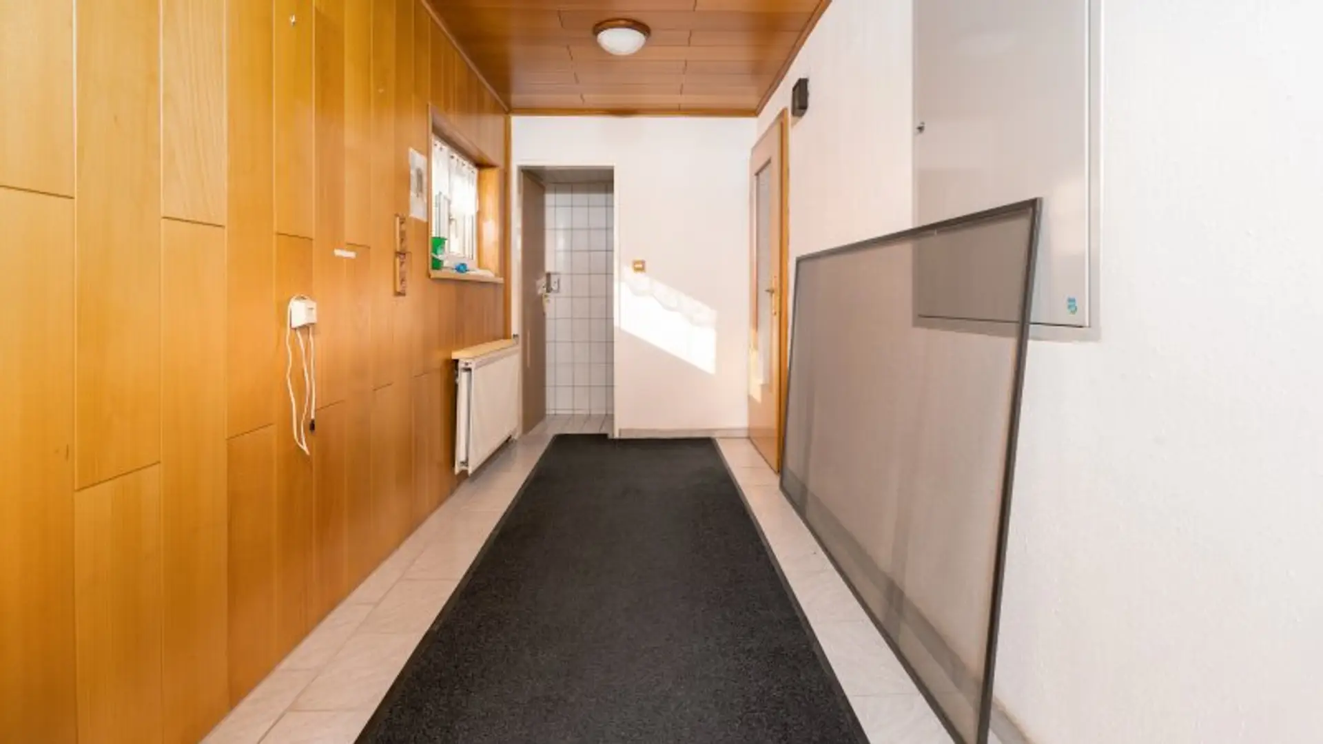 Vom Technikraum aus erreicht man die Werkstatt sowie die Garage. Letztere wurde in der Vergangenheit als Garage genutzt, der ursprüngliche Zufahrtsweg ist jedoch nicht mehr verfügbar, da er über ein Nachbargrundstück verlief.