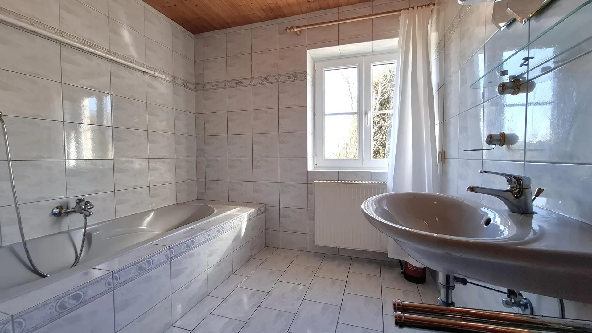 Die Wohnung im Untergeschoss verfügt über einen eigenen Eingang und umfasst ca. 72,54 m² Wohnfläche. Sie bietet eine Küche mit Einbaugeräten und Fenster, ein Badezimmer mit Badewanne, Dusche, WC und Waschtisch, einen Flur sowie drei Zimmer. Direkt anschließend befindet sich ein eigener Gartenbereich, der zusätzlichen Freiraum im Grünen schafft.