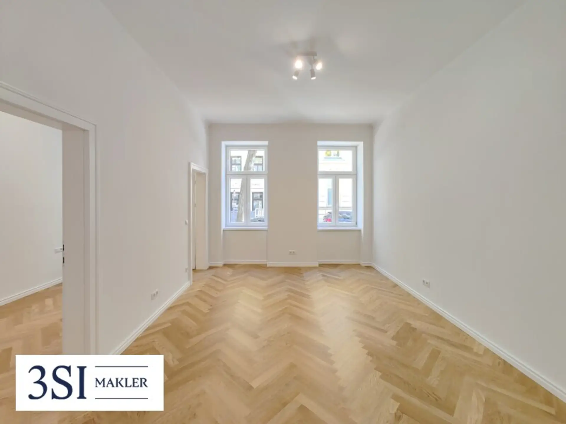 Zum Verkauf gelangt eine stilvoll sanierte 2-Zimmer-Altbauwohnung mit einer Wohnfläche von ca. 46m² im Erdgeschoss.