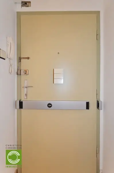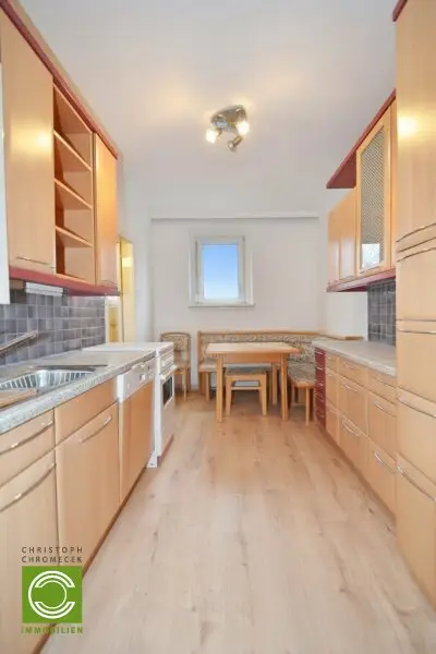 Zum Verkauf steht eine soeben teilrenovierte, helle 2-Zimmerwohnung mit unverbaubarem Blick auf den Alfred-Böhm-Park. Die Wohnung liegt im 1. Stockwerk und ist bequem mit dem Personenaufzug, der übrigens auch eine Haltestelle im Keller hat, zu erreichen. Von einem zentralen Vorraum aus sind neben der Küche und der Toilette, auch beide Räume zentral zu begehen, daher ist diese Wohnung bei Bedarf auch für eine Wohngemeinschaft von 2 Personen bestens geeignet. Raumhohe Fenster bieten einen tollen Blick auf den Park und auch viel Himmel. Die Böden wurden gerade neu verlegt und die Wohnung wurde auch neu ausgemalen. Die Küche ist komplett möbliert und verfügt auch über Gasherd und Geschirrspüler. Von der Küche aus zu begehen ist ein Duschbad mit Fenster und Waschtisch, hinter dem Badezimmer gibt es auch noch einen Abstellraum in dem man auch eine Waschmaschine installieren kann. Beheizt wird mit einer Gasetagenheizung, die Kombitherme befindet sich in der Küche. Die Wohnungseingangstüre wurde verstärkt und zusätzlich mit einem Balkenschloss versehen. Zum weitern Umfang gehört auch noch eine Kellerabteil mit ca. 4 m².