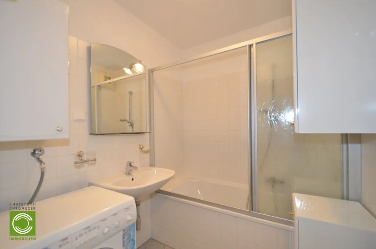 Zur Vermietung auf 5 Jahre kommt eine perfekte 2-Zimmerwohnung in Grünruhelage in Nähe zur U6 Alterlaa. Die Wohnung liegt im 2. Liftstock einer modernen Wohnhausanlage und besteht aus einem zentralen und möblierten Vorraum, einer extra Toilette, einem Wannenbad mit Waschtisch und Waschmaschine, einem geräumigen Wohnraum mit Ausgang auf die rund 8 m² große gedeckte Loggia von der man einen schönen Blick in die umliegenden Gärten hat, einer dem Wohnzimmer angeschlossenen Komplettküche und einem separaten Schlafraum. Die auf den Fotos ersichtlichen Möbel im Wohn- und Schlafzimmer können gerne übernommen werden, für den Fall dass diese nicht benötigt werden, werden diese vom Vermieter geräumt. Kabel-TV und Internetanschlüsse gibt es sowohl im Schlaf- als auch im Wohnzimmer. Die Wohnung wurde soeben neu ausgemalen und die Fenster sind auch bereits mit rollbaren Insektenschutzgittern versehen, sodass man auch in der Nacht bei geöffnetem Fenster die Ruhe genießen kann. Beheizt wird mit Fernwärme. Zum übrigen Wohnungsumfang gehören auch noch eine PKW-Stellplatz in der Tiefgarage und ein rund 6 m² großes Kellerabteil, beides ist bequem mit dem Lift erreichbar. Die Station der U6 ist nur wenige Minuten zu Fuß entfernt.