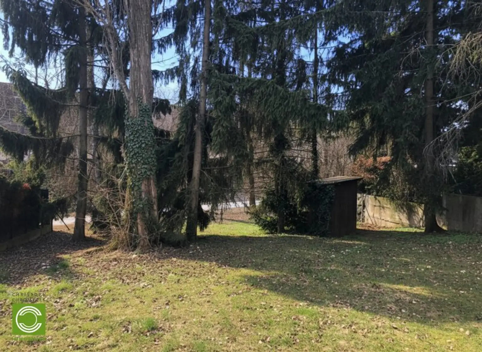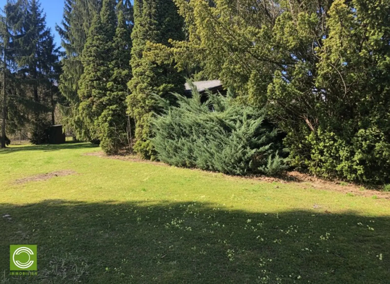 Die vordere Baufluchtlinie befindet sich bei 3 Meter, die hintere Baufluchtlinie bei ca. 34 Meter, jeweils von der Straßenfront gerechnet. Auf dem Grundstück befinden sich eine Gartenhütte aus Holz sowie ein hübscher Altbaumbestand. Das gesamte Grundstück ist eingezäunt und verfügt auch über einen Wasseranschluss. Am unteren Ende des Grundstücks gibt es einen zusätzlichen Ausgang auf einen Gehweg, dahinter befindet sich die Lärmschutzwand zur A21.