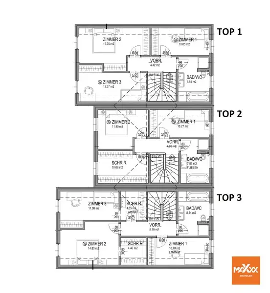 Das Eckreihenhaus TOP 1 hat eine durchdachte Raumaufteilung, mit einer Wohnfläche von ca. 111 m² und ein schönes Grundstück mit einer Fläche von ca. 151 m².