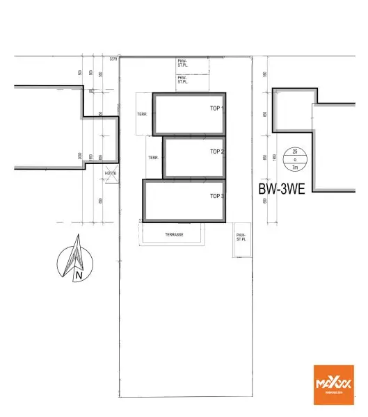 In einer sehr schönen Wohnsiedlung, direkt in Baden werden diese 3 Reihenhäuser errichtet.