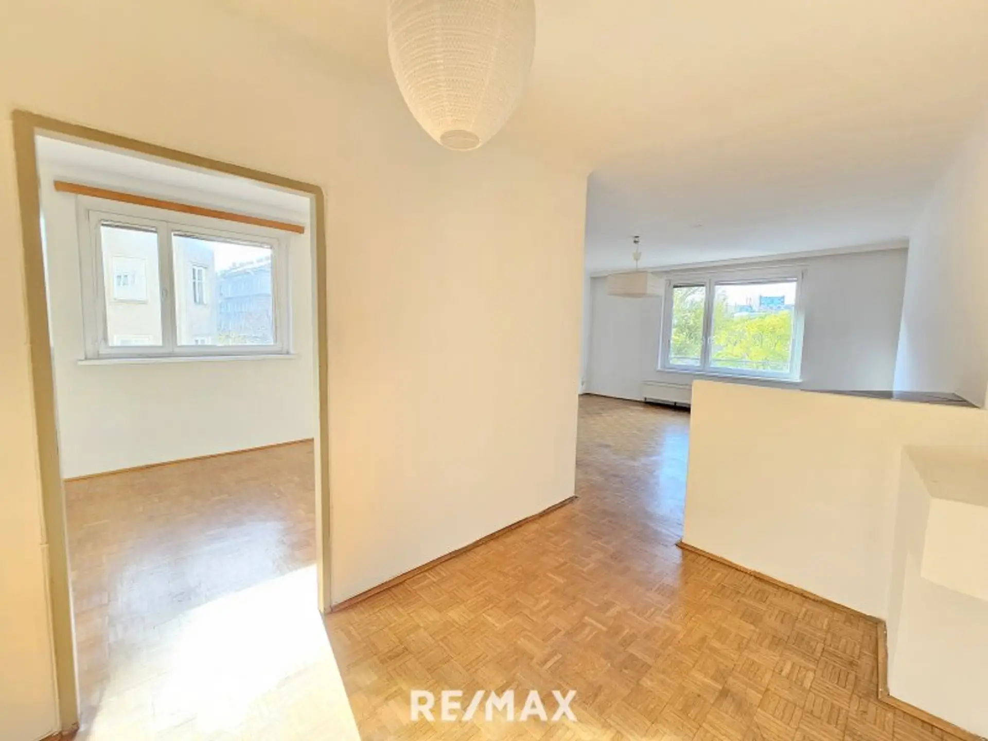 Eine Wohnung mit Potenzial. Mit Blick auf die Bäume und darüber hinaus. Die großen Fenster bringen viel Licht in die Wohnung. Die Küche kann auch zum Kinderzimmer werden. Im Wohnzimmer kann eine Wohnküche entstehen. Ihre Fantasie findet bei der Modernisierung und der Neugestaltung der Wohnung ein reiches Betätigungsfeld.