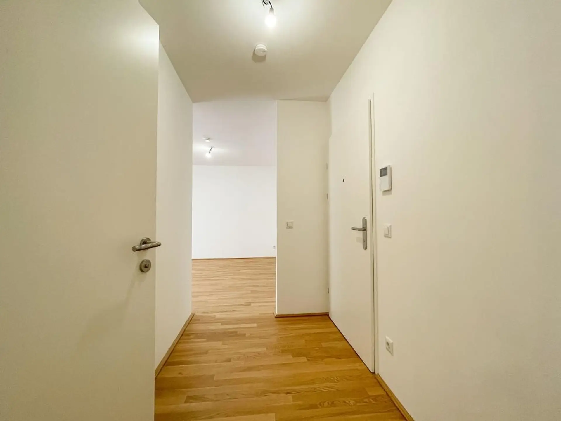 Eine moderne 2-Zimmerwohnung bestehend aus Vorraum, Wohnzimmer, einer vom Bad getrennten Toilette sowie einem Schlafzimmer mit begehbarem Ankleidebereich und en Suite Bad wird im zweiten Liftstock in einer von einem namhaften Entwickler , gerade ( Mai 2021 ) fertiggestellten Wohnhausanlage zur befristeten Miete auf 5-10 Jahre im Erstbezug angeboten.