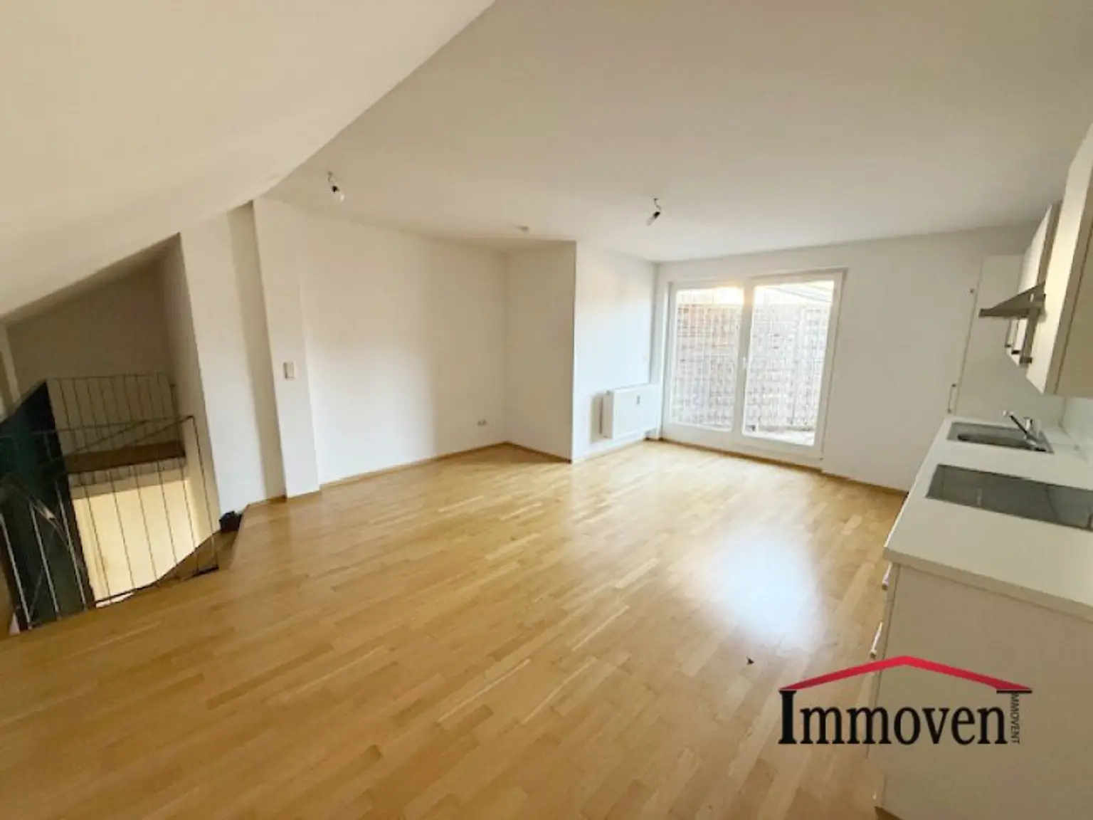 + Wohnraum mit offener Küche und Zugang auf den Balkon