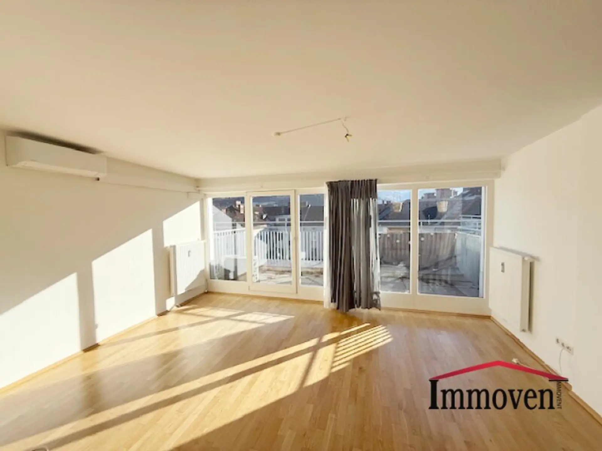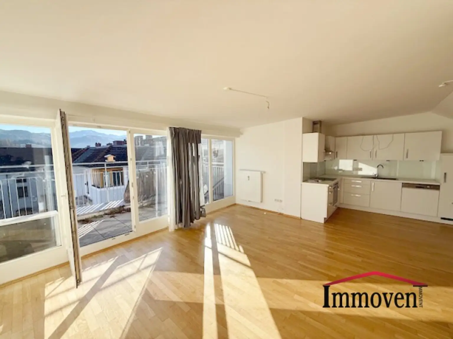 + Wohnraum mit offener Küche und Zugang auf den Balkon