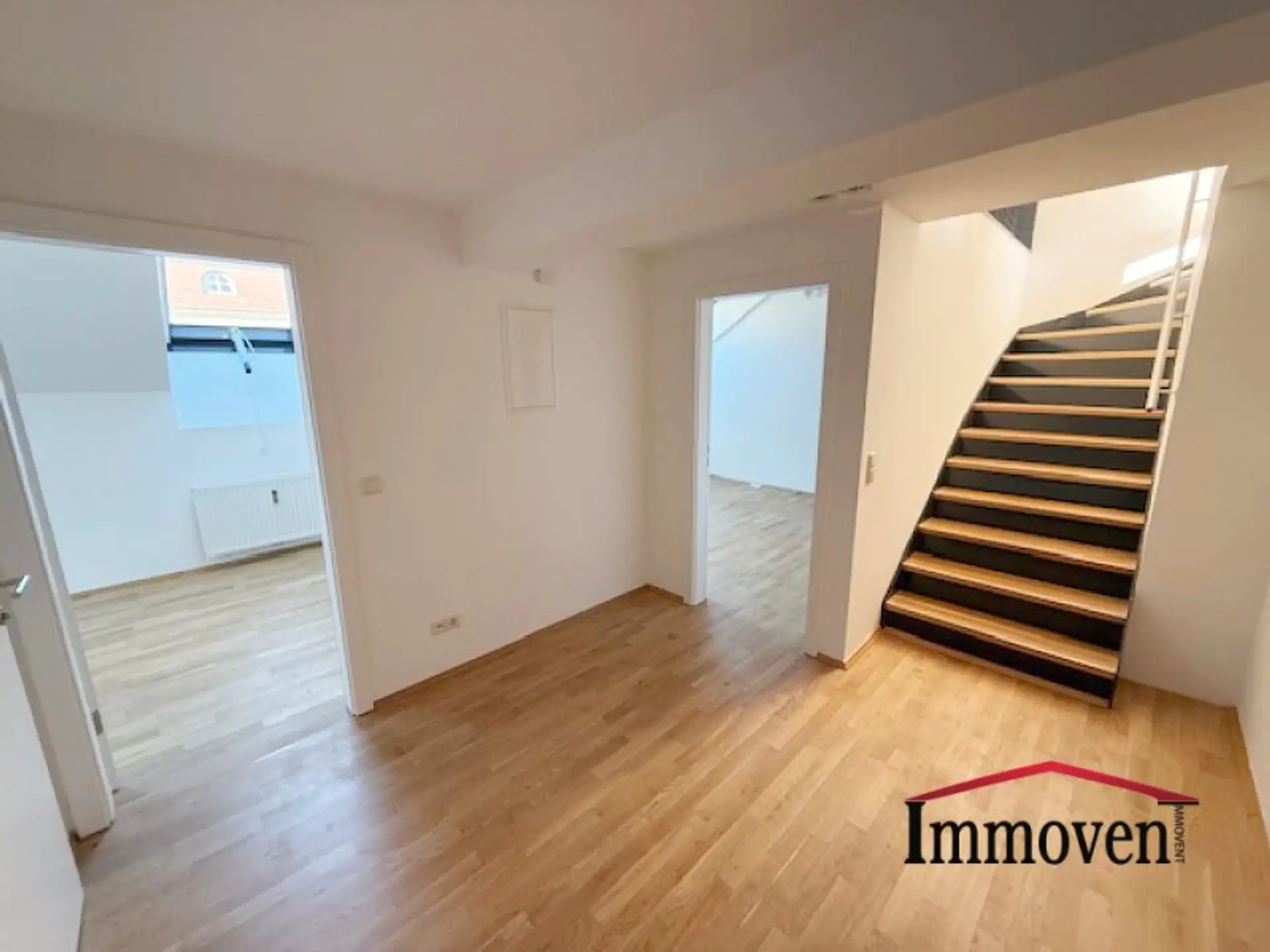 Die 3-Zimmermaisonettewohnung befindet sich im 1. Dachgeschoss (Lift vorhanden), erstreckt sich über 2 Etagen, bietet eine Nutzfläche von ca. 86 m³ und einen Balkon.