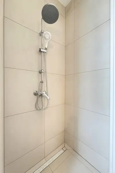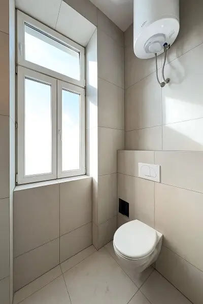 Das Badezimmer ist modern verfliest und mit einer Dusche sowie einem WC ausgestattet. Hochwertiger Parkettboden verleiht dem Wohnraum eine warme und einladende Atmosphäre.