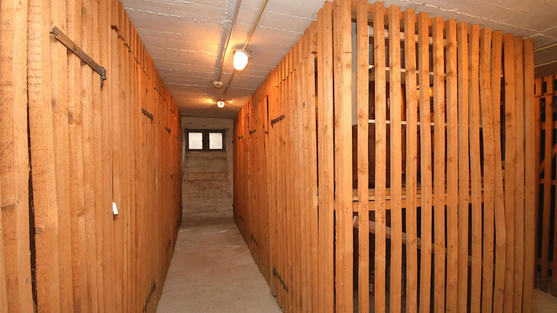 Ein Kellerabteil, allgemeiner, abgesperrter Parkplatzbereich mit Schranken, Radabstellraum und eine gemeinschaftliche Waschküche mit