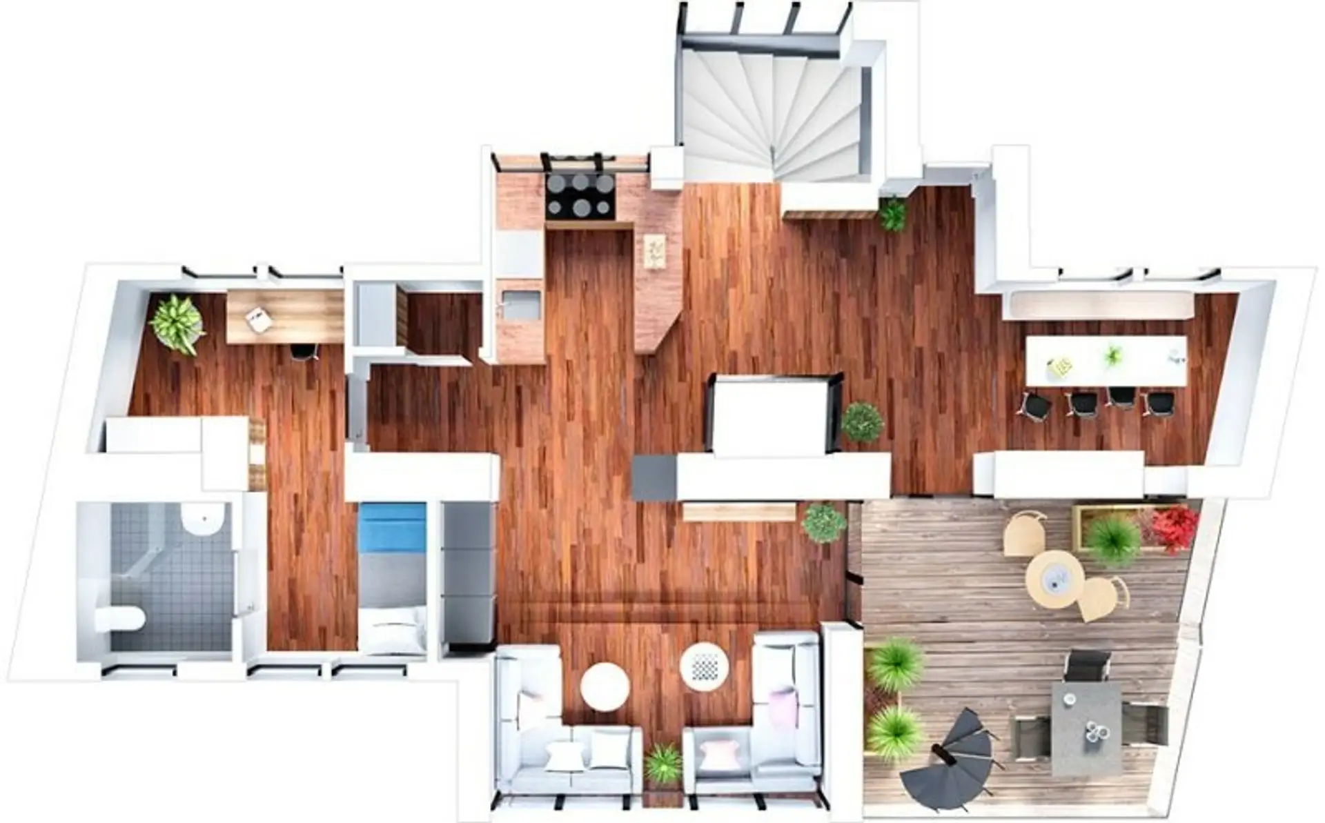 Zusätzlich hast du Zugang zur großen Terrasse, einem zusätzlichen Co-Living-Wohnraum und einer Gemeinschaftsküche. Hier kannst du dich mit deinen Mitbewohnern austauschen oder mehr Platz nutzen, wenn du Freunde empfängst.