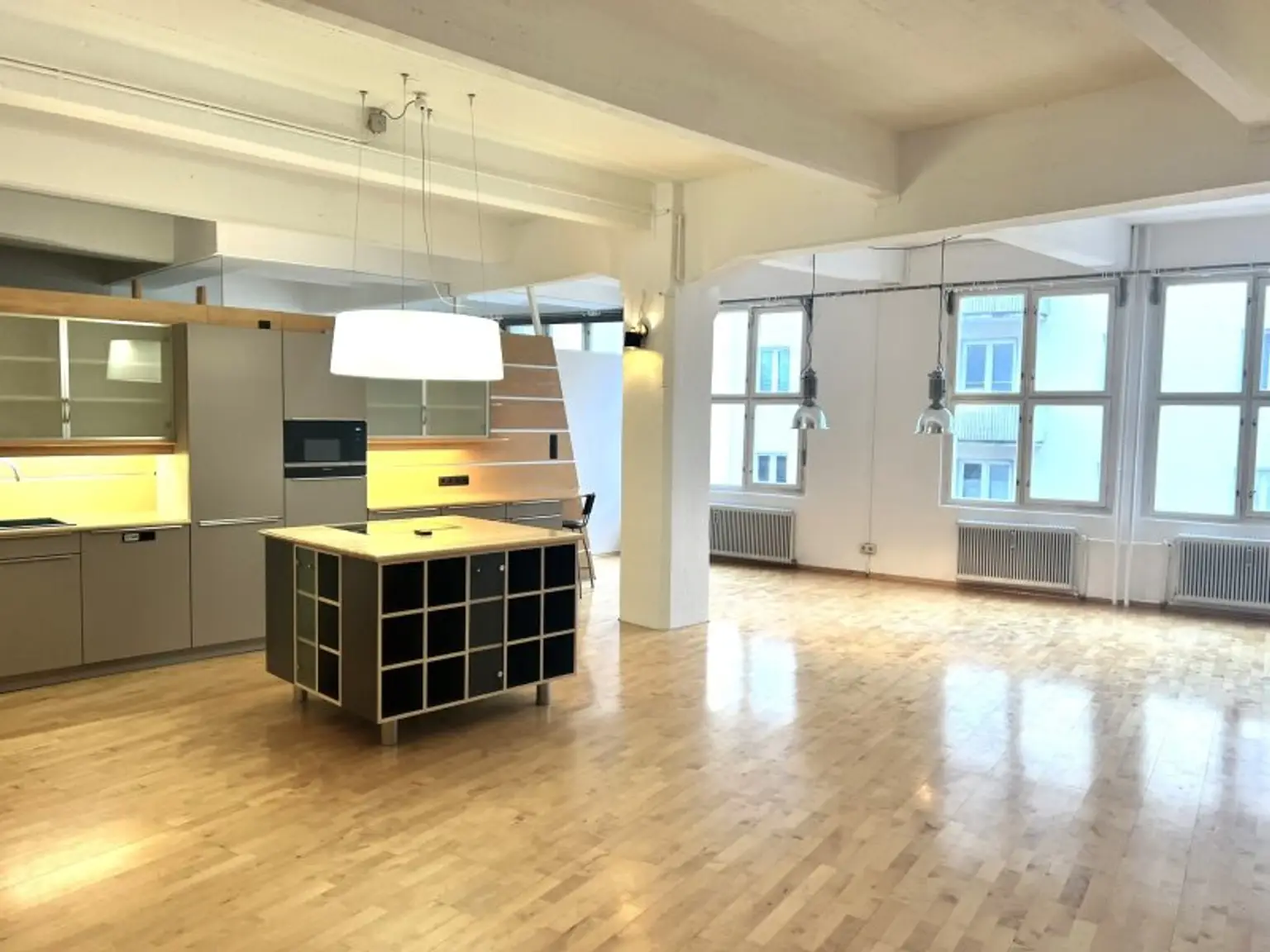 Das attraktive Loft ist bereits geräumt und wird unmöbliert inkl. Küche, Bäder und Sanitärräume zum Kauf angeboten und steht ab sofort zur Verfügung.