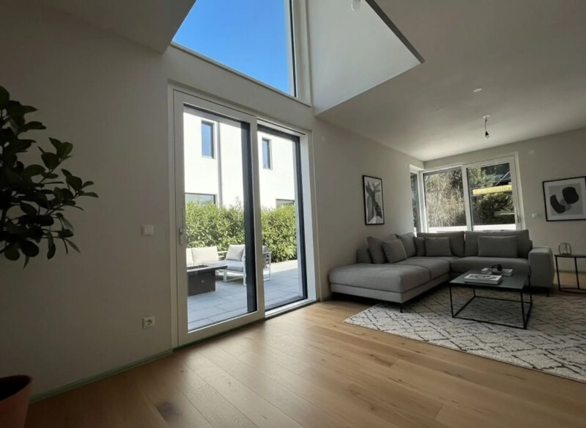 Im Vordergrund steht eine nachhaltige Bauweise mit moderner Architektur in Einklang zu bringen. Große Fensterelemente und Freiflächen beziehen dabei die Natur in den Wohnraum mit ein, und schaffen damit aus jedem Fenster entspannende Ausblicke ins Grüne.