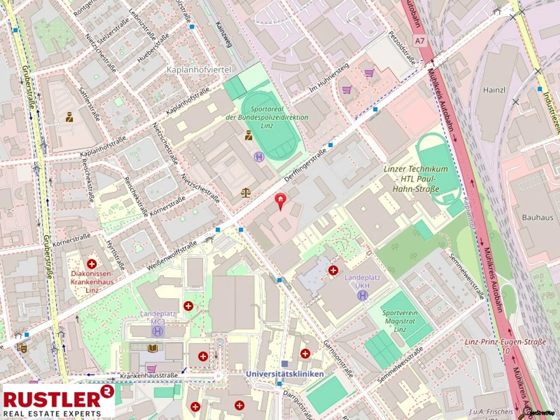 Nahversorger für den täglichen Bedarf finden sich in unmittelbarer Gehweite, ebenso einige Schulen, Kindergärten und das Zahnambulatorium. Zahlreiche Restaurants, Serviceunternehmen z.b. für Fahrräder wie auch Banken sind im Viertel gut vertreten. Für Freizeitaktivitäten bietet sich sommers wie winters das Parkbad perfekt an, gleich wie die nahe gelegene Donaulände mit ihren Grünflächen.
