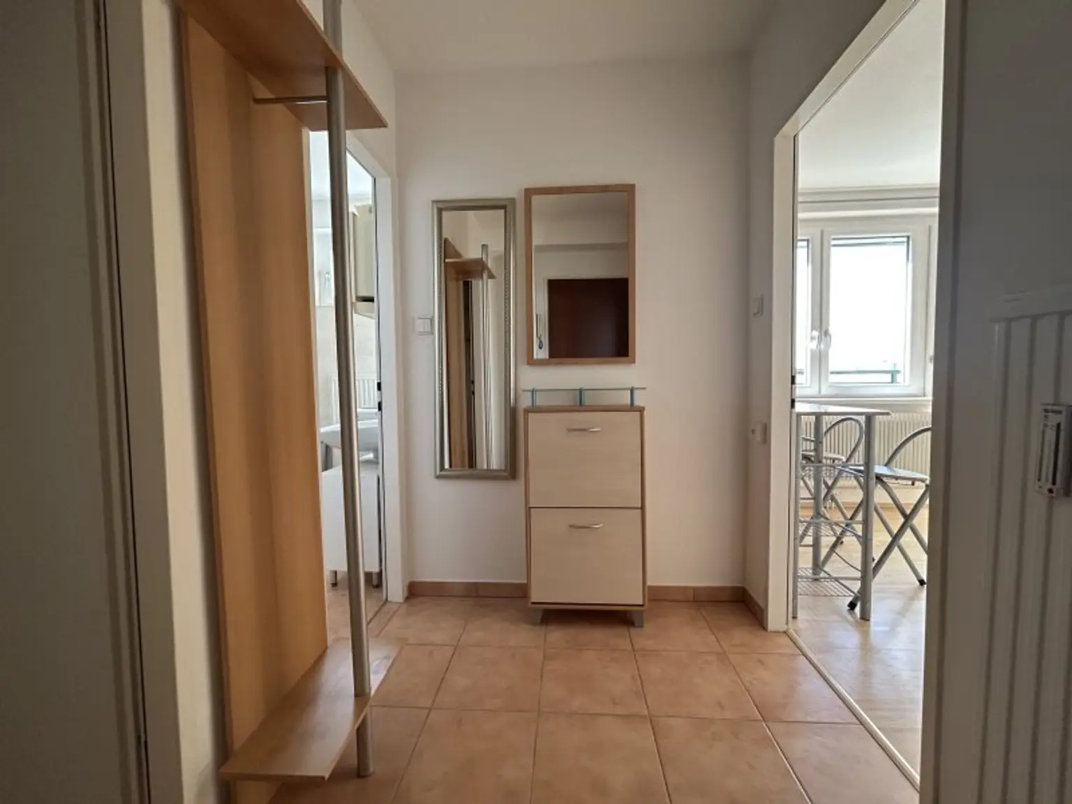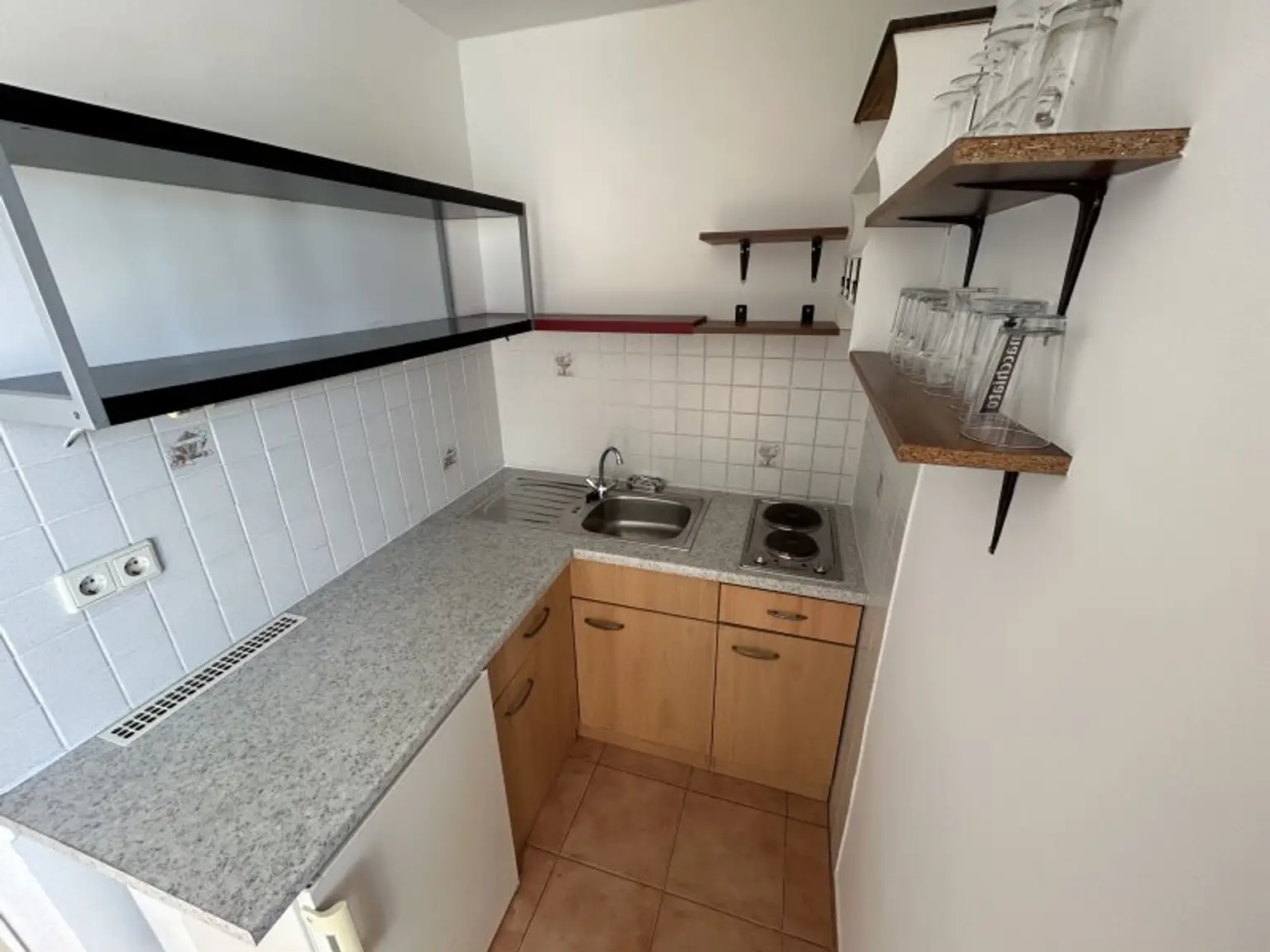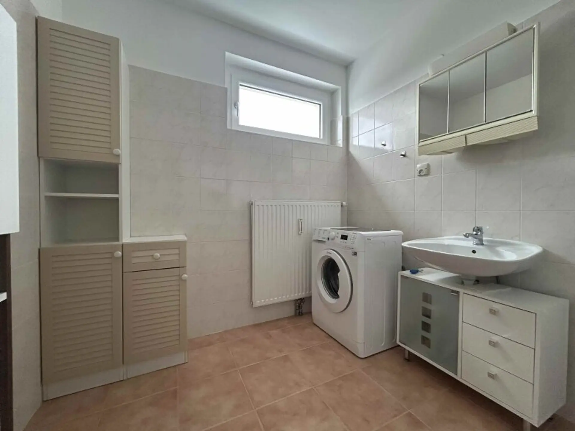 SEHR gut eingeteilte GARCONNIERE / gemäß Plan 31,12m² Wohnfläche + ca. 9,62m² TERRASSE / zentraler Vorraum + geräumiges Wohn-/Schlafzimmer samt ausgestatteter Kochnische + großes BADEZIMMER (6,15m²) mit Fenster, Dusche, Waschtisch, Waschmaschinenanschluss und WC + Abstellraum.