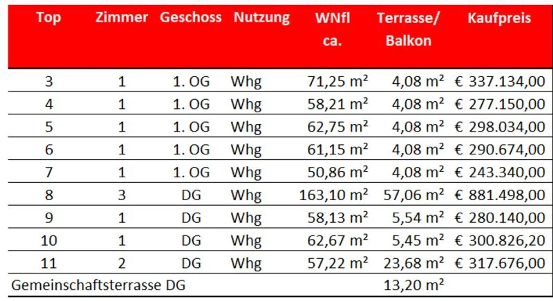 Gerne übermitteln wir Ihnen auf Anfrage Detailinformationen zu allen verfügbaren Wohnungen im Haus.