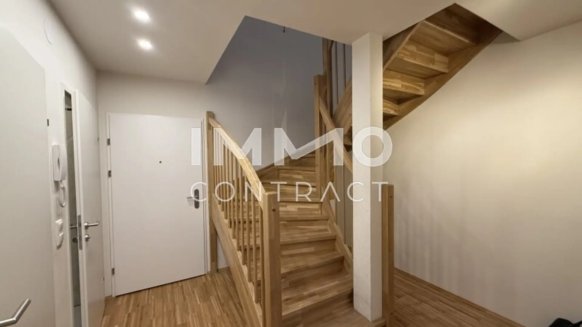 In die Vermarktung gelangt diese außergewöhnliche DG-Maisonette mit Terrasse. Auf zwei Etagen befinden sich zwei Bäder und drei Schlafzimmer.