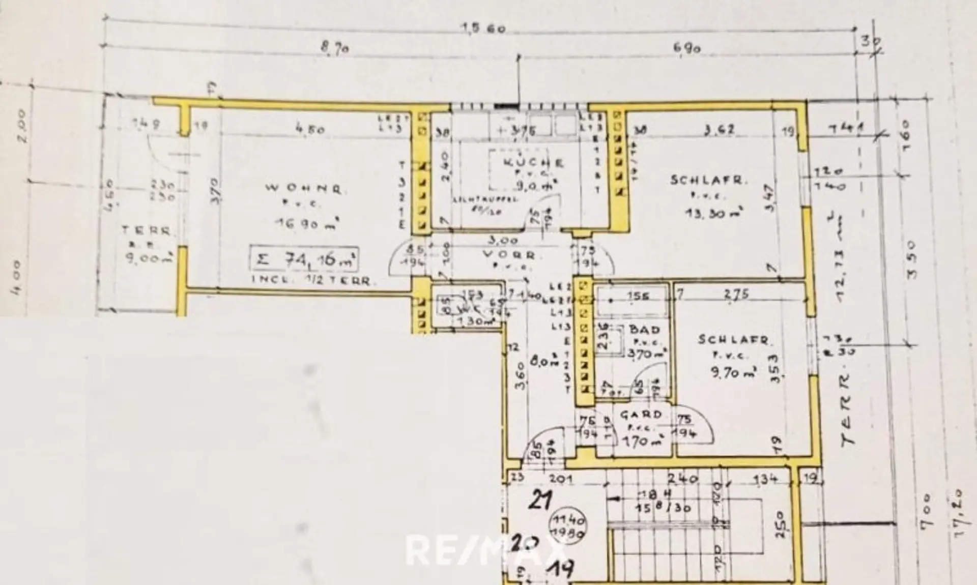 Zum Verkauf gelangt diese sanierungsbedürftige, komplett hofseitige Drei-Zimmer-Wohnung mit zwei Terrassen im Dachgeschoß (4. Stock) ohne Schrägen in Jedlesee.