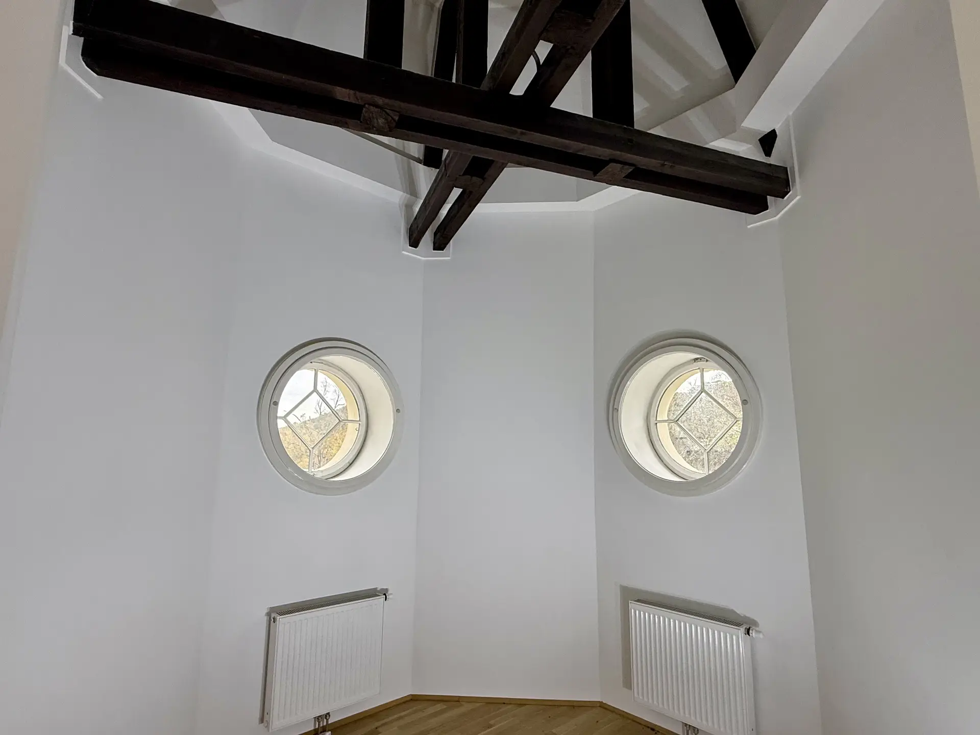 Mit einer Wohnnutzfläche von ca. 81 m² bietet diese einzigartige Dachgeschoss-Turm-Wohnung nicht nur viel Platz, sondern auch eine exklusvie Raumhöhe von ca. 5 Metern.