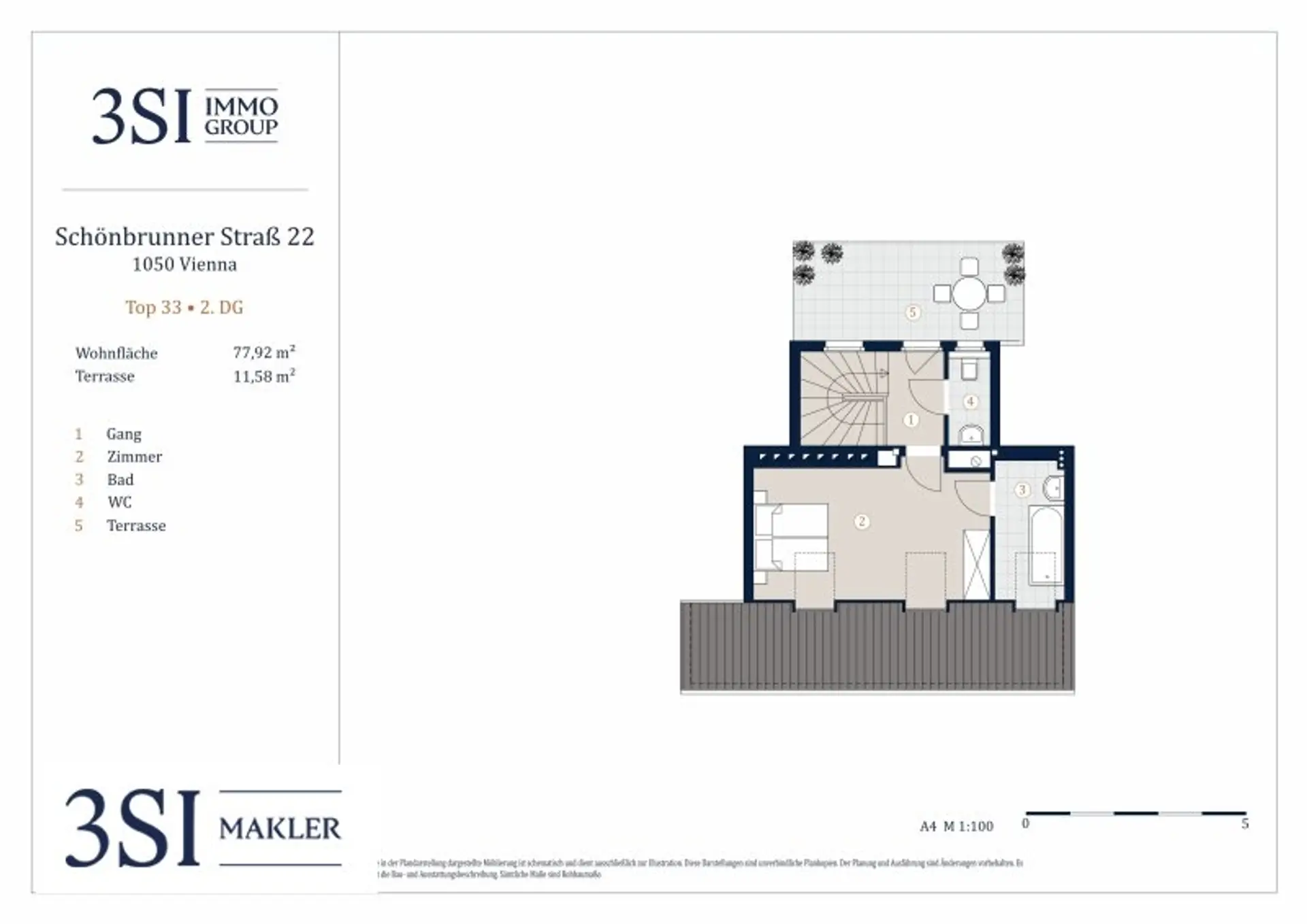 Zum Verkauf gelangt eine sanierte, perfekt aufgeteilte 2-Zimmer Dachgeschoss-Maisonette mit Terrasse in einem gepflegten Stilaltbau in Top-Lage des 5. Bezirks. Diese ansprechende Wohneinheit überzeugt mit einem durchdachten Grundriss, Helligkeit und einer hochwertigen Ausstattung. Sie verfügt über ca. 78m² Wohnfläche, 11m² Terrasse und teilt sich wie folgt auf: