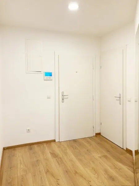 Der Zugang zur Wohnung erfolgt durch einen großzügigen Eingangsbereich, in dem ausreichend Platz für Garderobe und Kästen vorhanden ist.