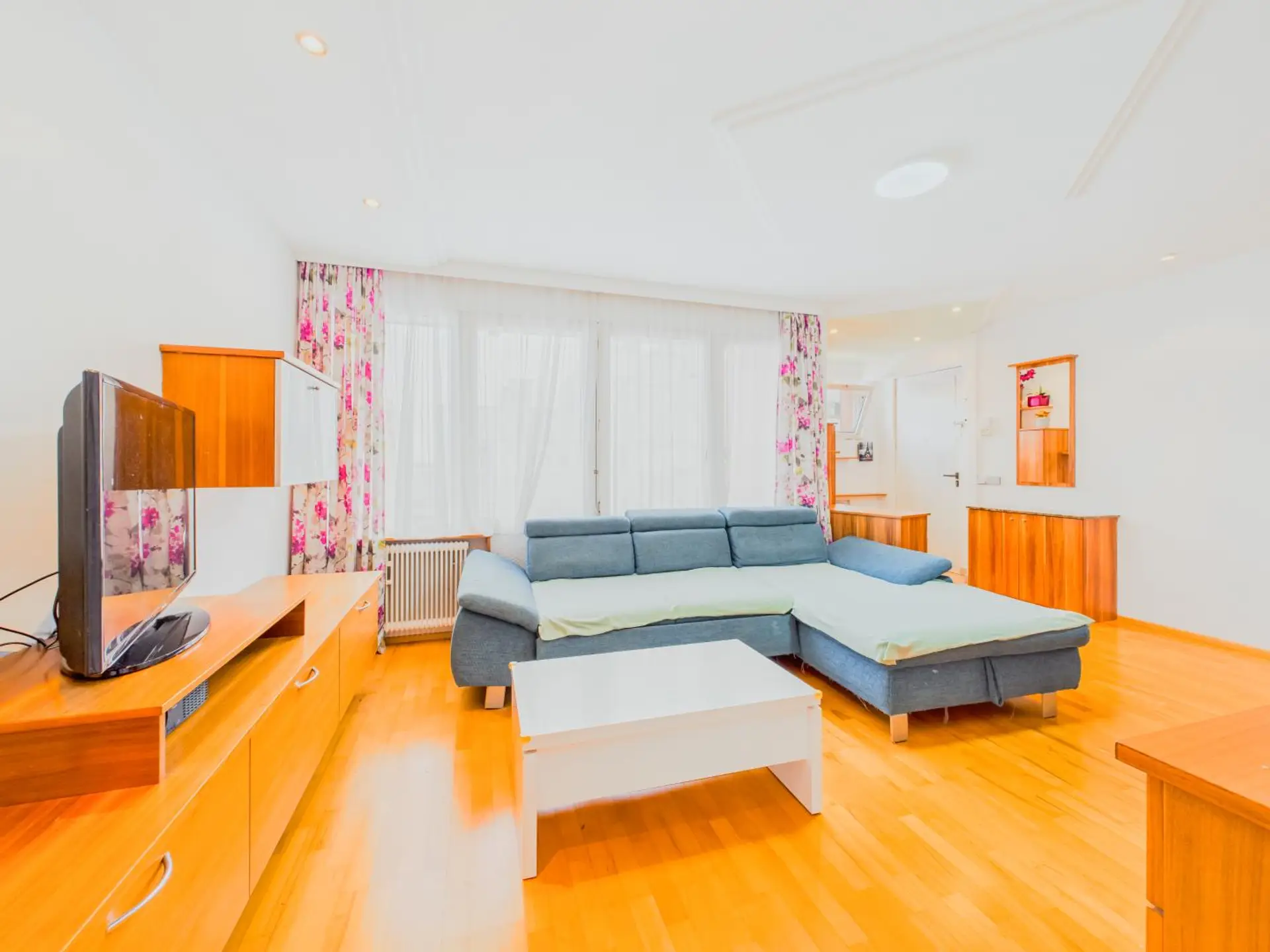 Der Grundriss bietet ein weitläufiges Wohnzimmer, einen separaten Küchenbereich, zwei gut geschnittene Schlafzimmer, ein gepflegtes Badezimmer mit Badewanne und Dusche sowie ein separates WC. Die Räume sind angenehm dimensioniert und schaffen ein Wohnambiente, das sowohl Familien als auch Paaren viel Platz und Flexibilität bietet.