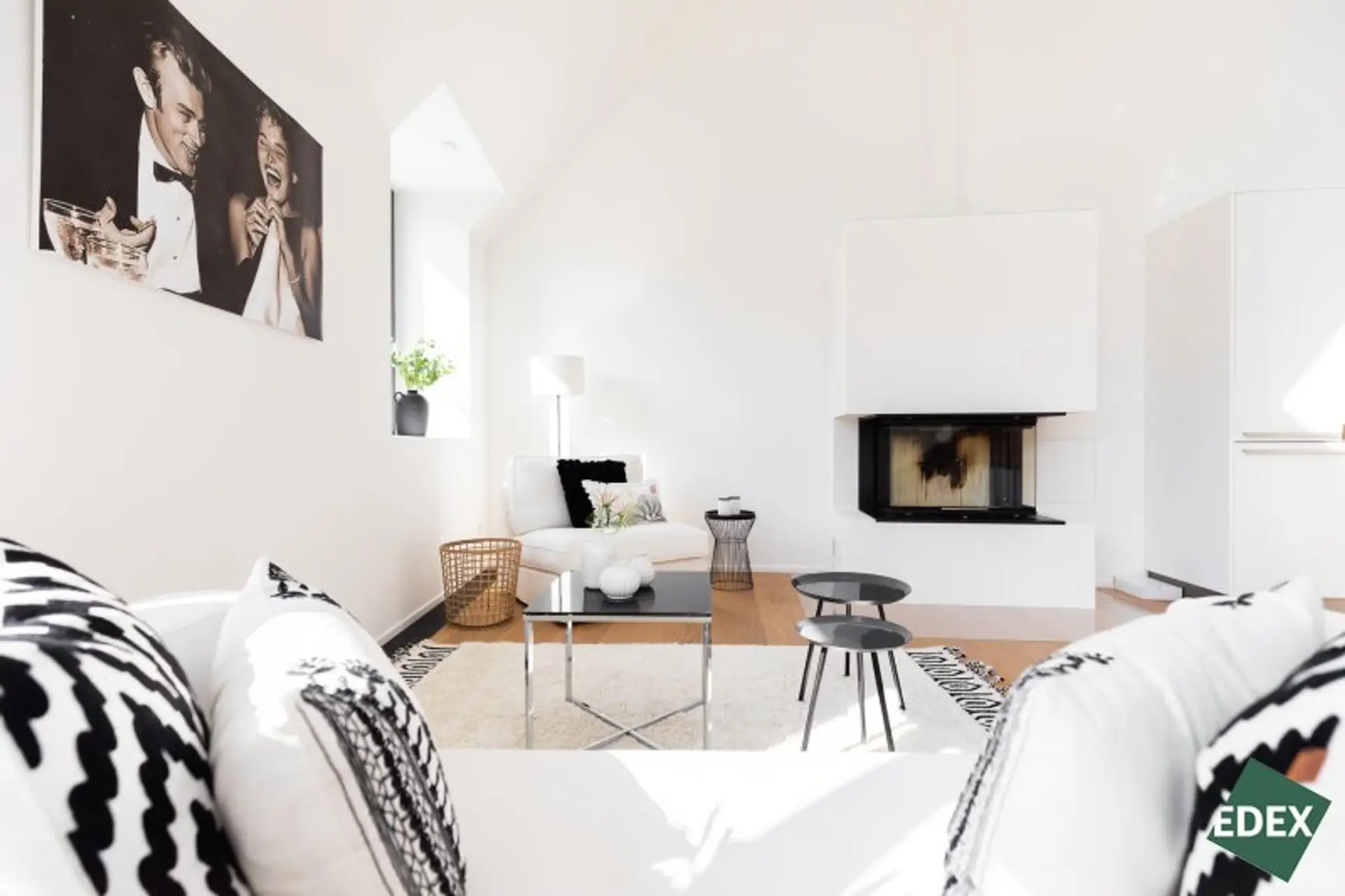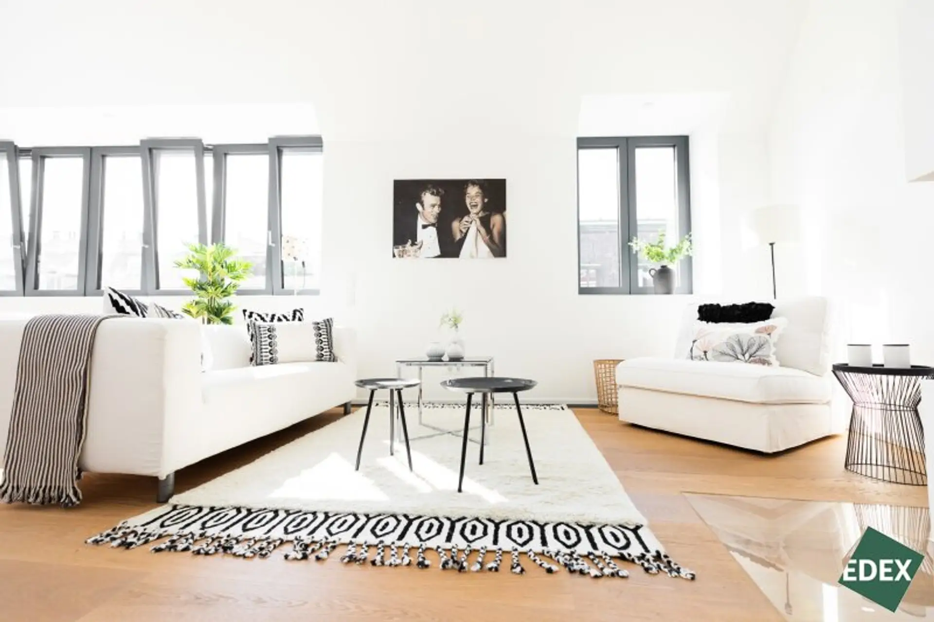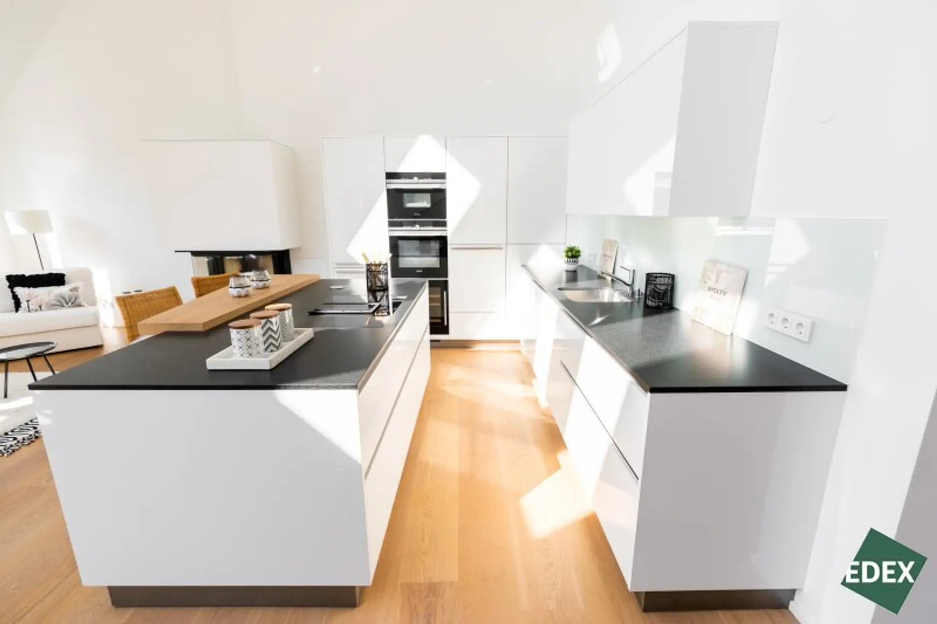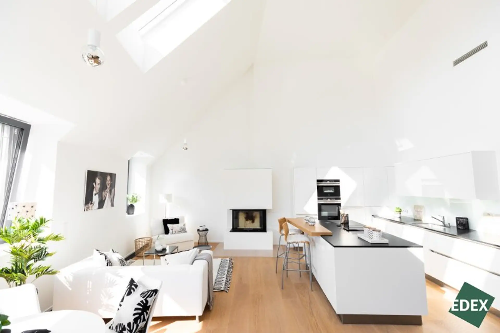 Auf rund 180 m² und zwei Etagen findet man eine Atmosphäre der absoluten Extraklasse. Die 4 Zimmer sind sehr großzügig angelegt und ermöglichen ein offenes und beindruckendes Wohnerlebnis. Die Wohnung verfügt über eine loftartige Wohnküche mit einer Raumhöhe von mehr als 5m. Das Galleriegeschoss verfügt über einen separaten Master-Bedroom. Ein Gästezimmer und ein Kinderzimmer befinden sich im Dachgeschoss.