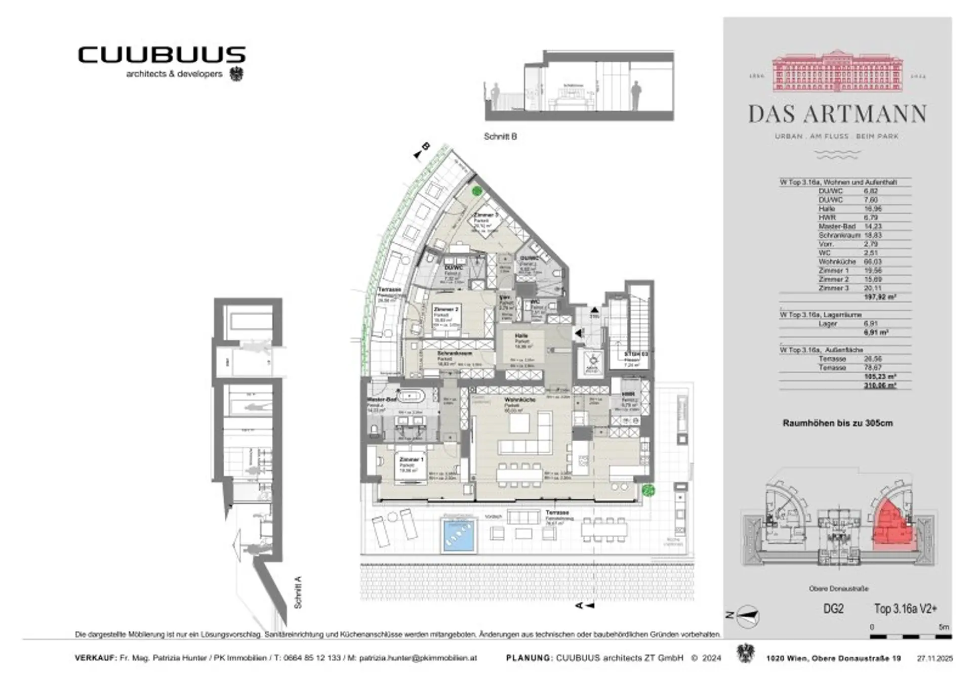 * Im 1. DG wurden Einheiten mit 78m² bis 166m² errichtet.
